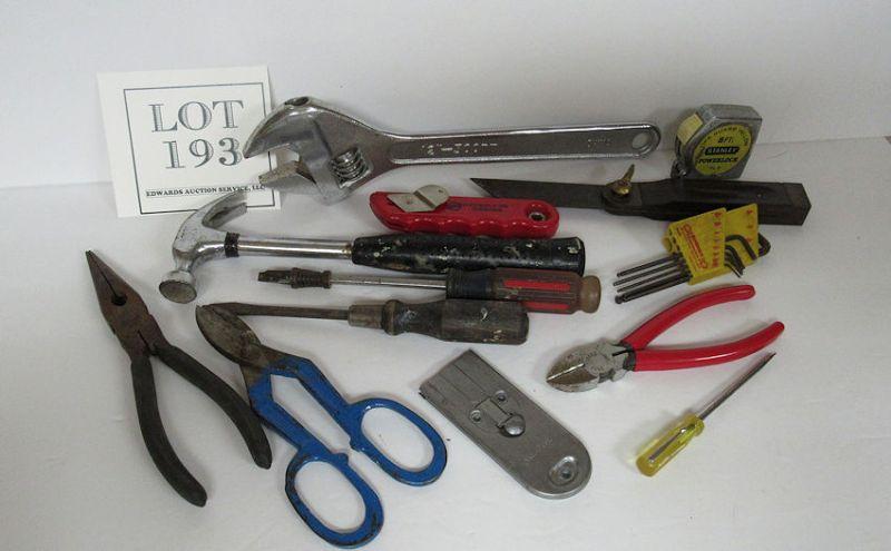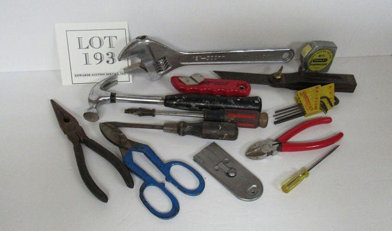 13 Old Tools, 12" Crescent Wrench, 9" Hammer, More