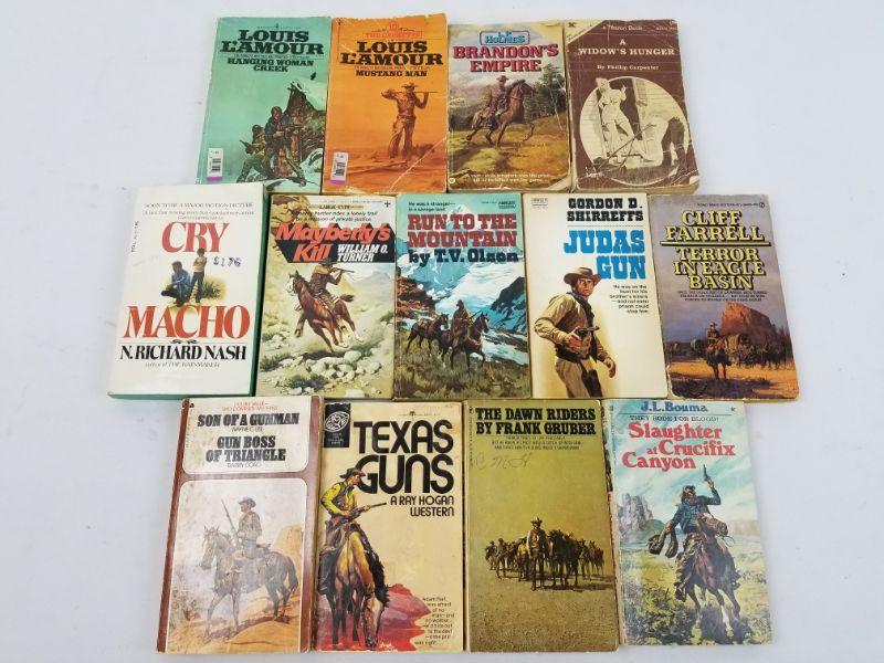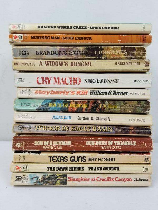 13 Paperback Western Novels: Hanging Woman Creek -to- Slaughter at Crucifix Canyon
