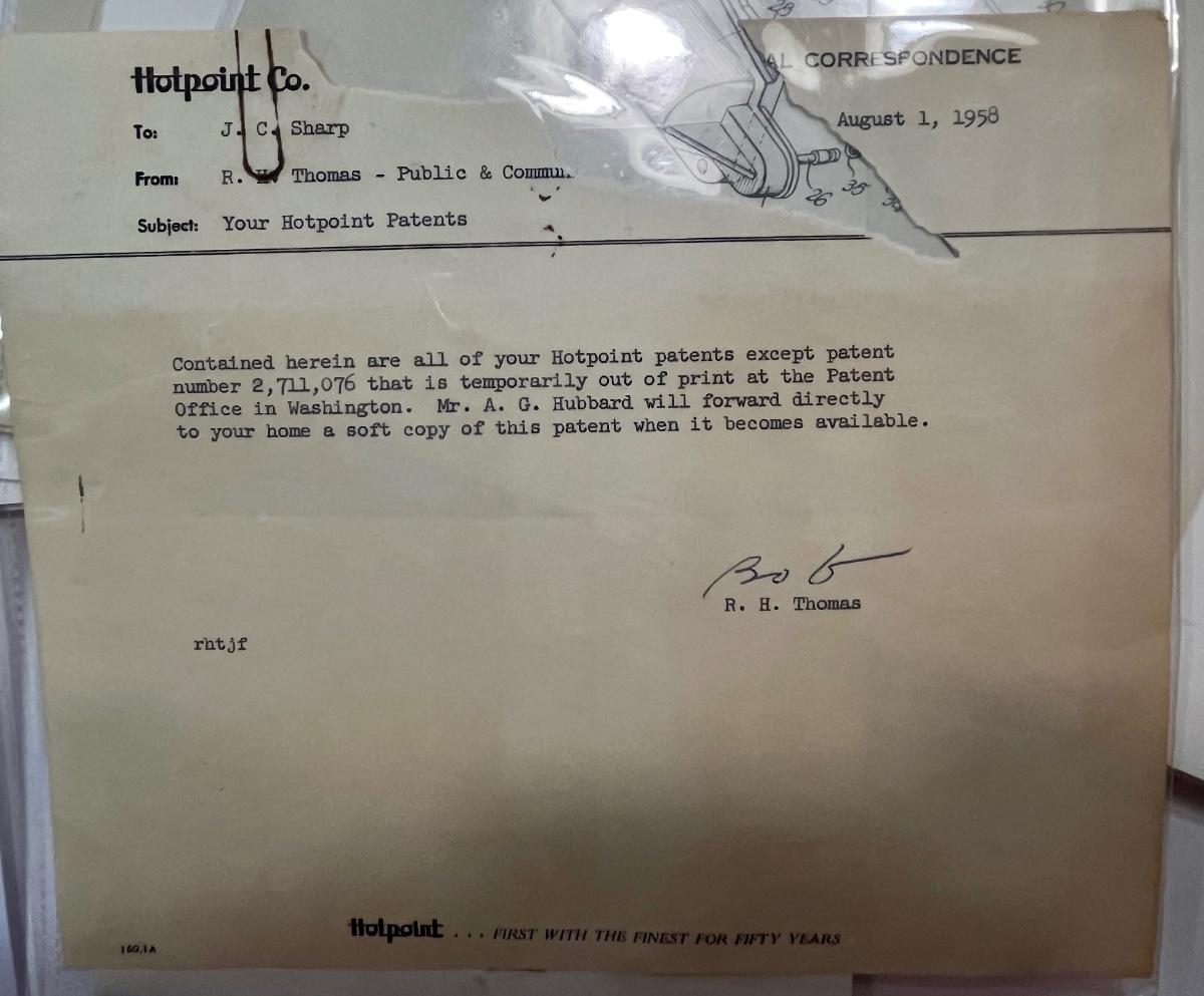 13 Patents from 1936-1955 granted Inventor John C. Sharp (HotPoint)
