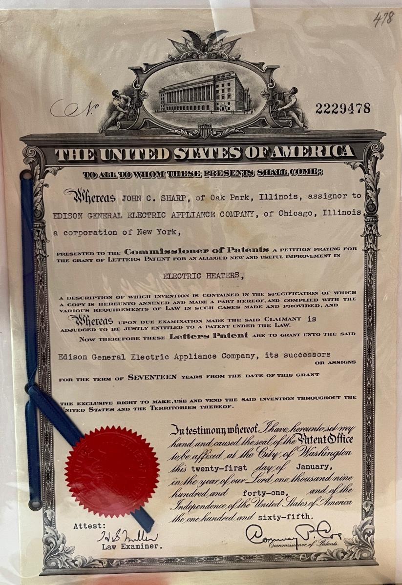 This is a great collection of the original patents from John C. Sharp when he worked for HotPoint and Edison Technologies. It includes patents for heaters, dishwashers. washing machines and more. 13 patents and certificates.