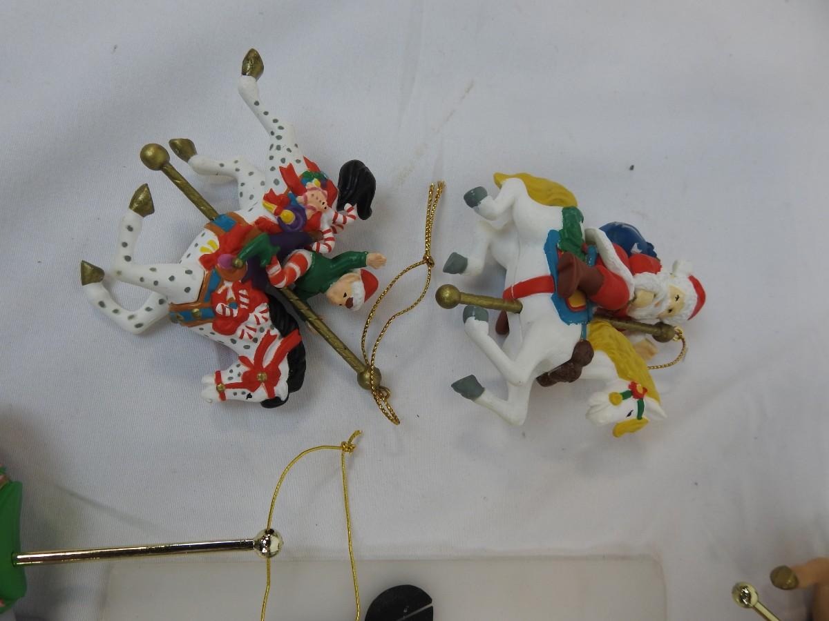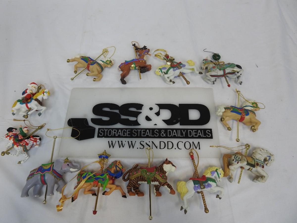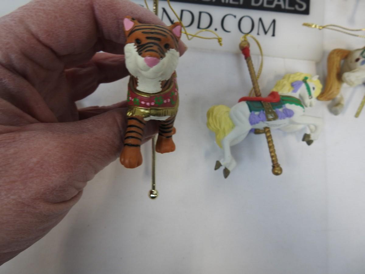 13 pc Carousel Animal Ornaments:  Horses, Elephant, Tiger, Santa & Elf on Horses