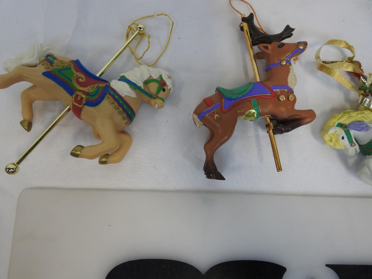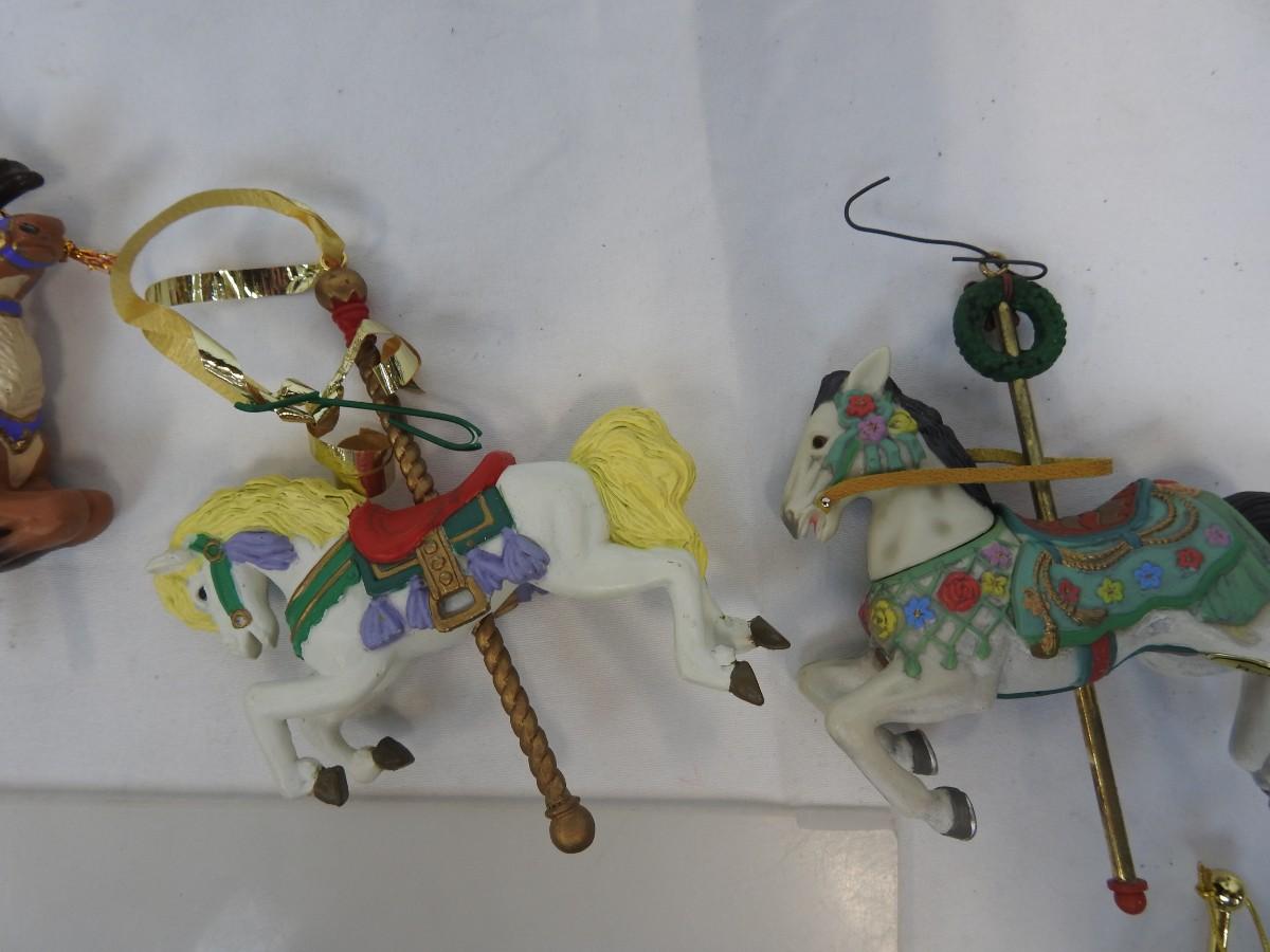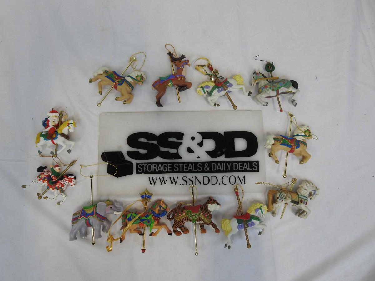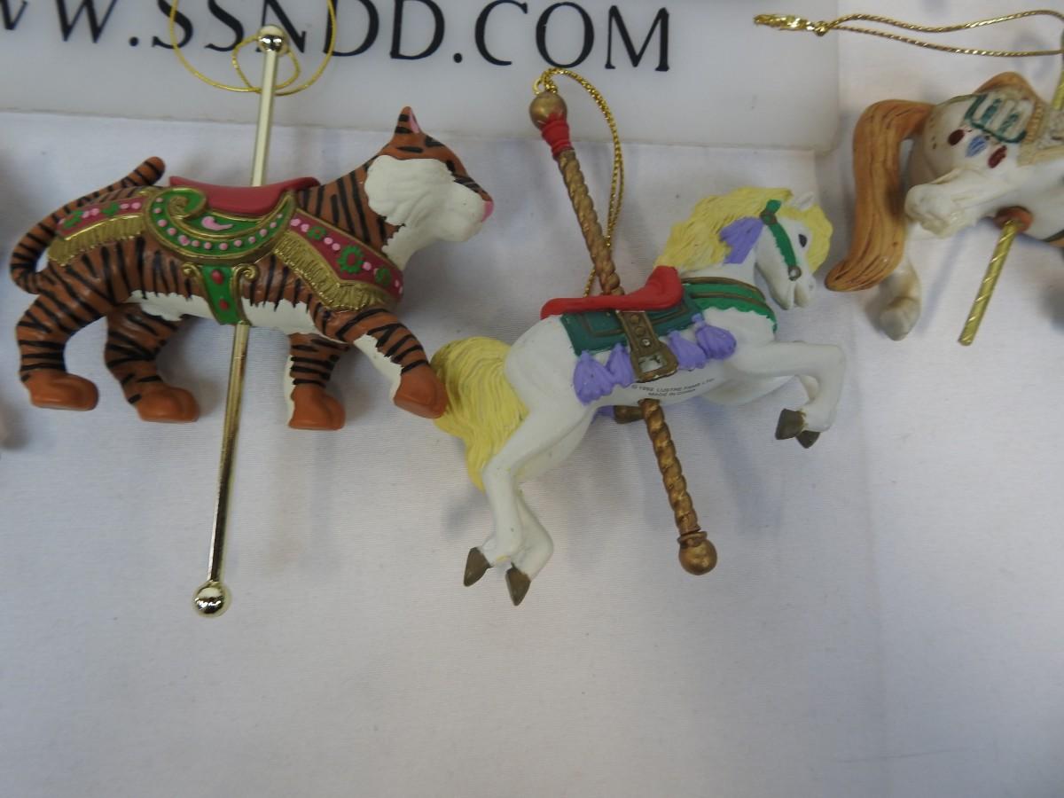 13 pc Carousel Animal Ornaments:  Horses, Elephant, Tiger, Santa & Elf on Horses