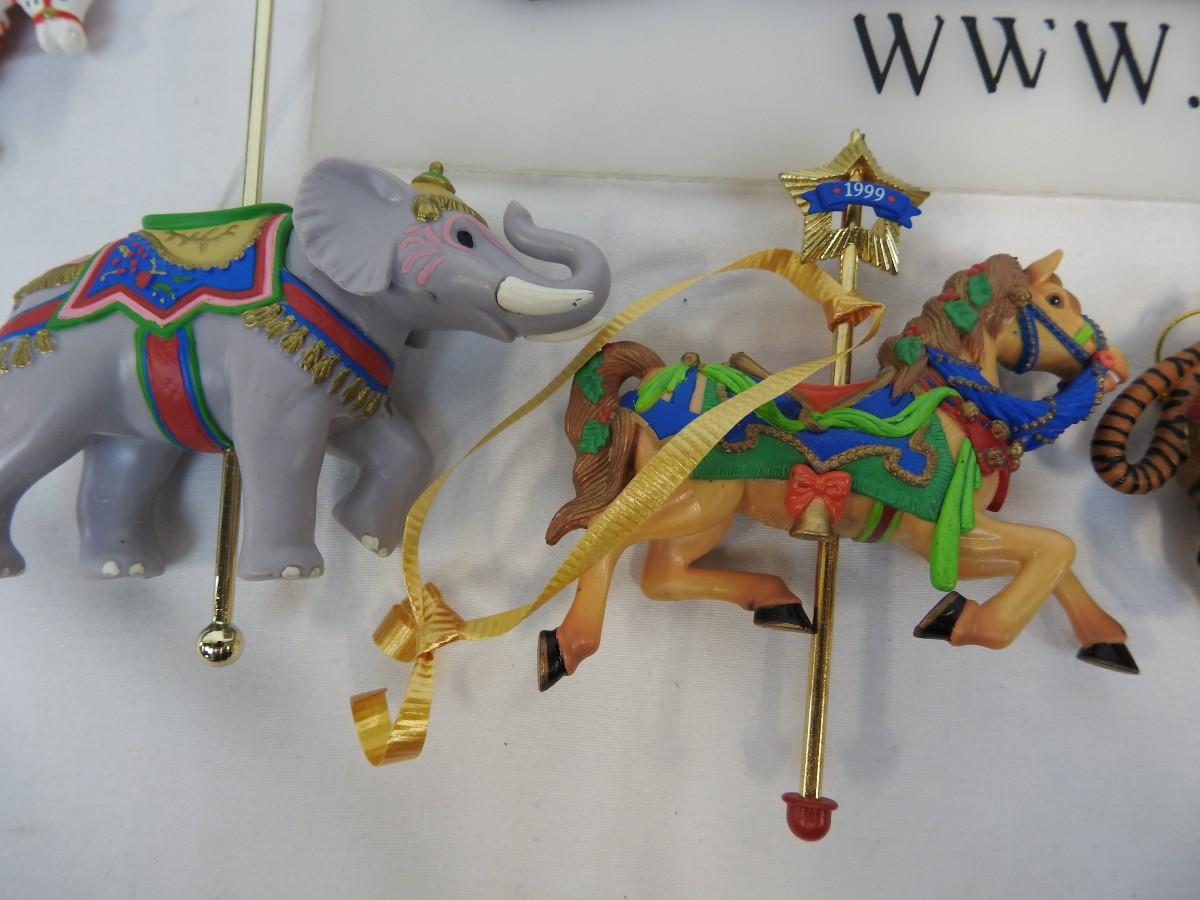 13 pc Carousel Animal Ornaments: Horses, Elephant, Tiger, Santa & Elf on Horses
