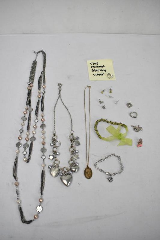 13 Pc Costume Jewelry: 5 Charms, 3 Earrings, 2 Bracelets, 3 Necklaces