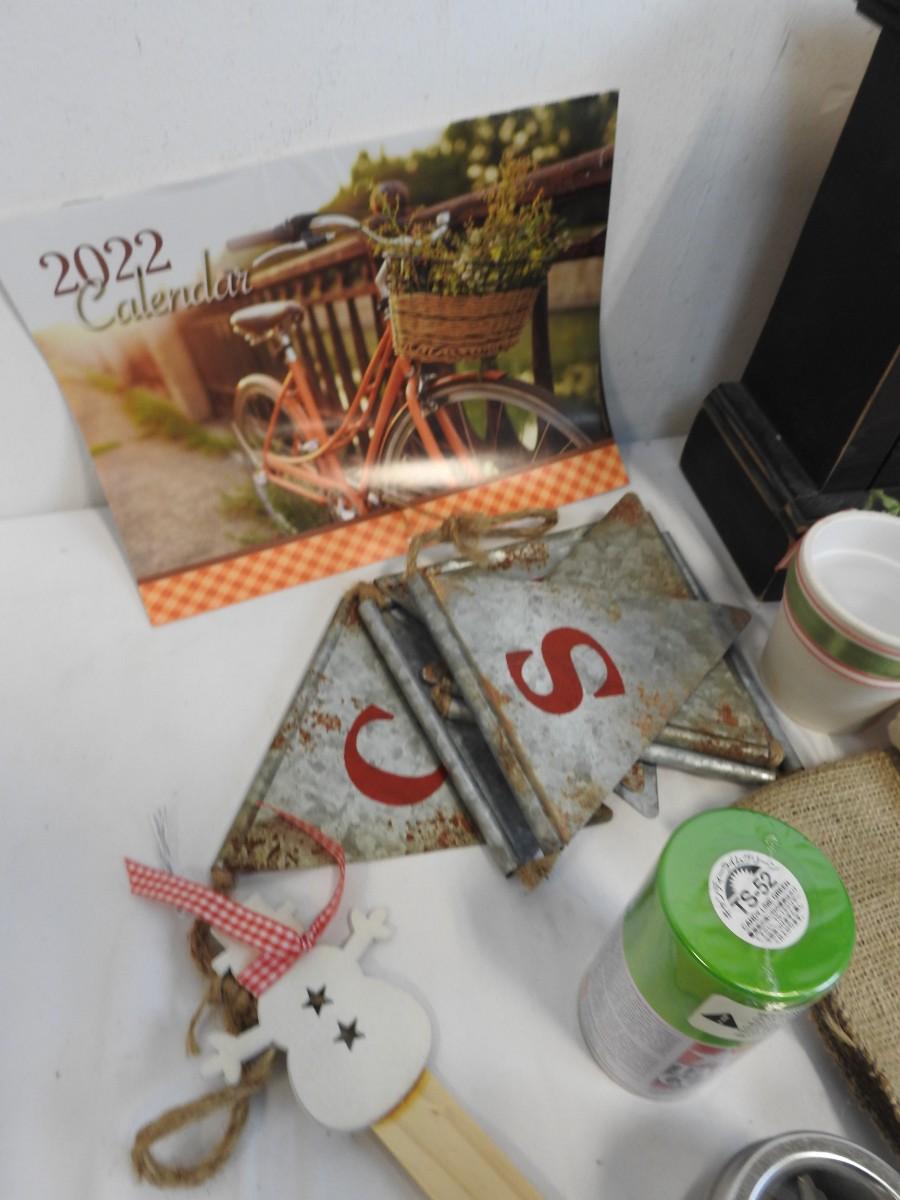 13 pc Craft Lot: Metal Christmas Sign, Desk Lamp, Bedazzler