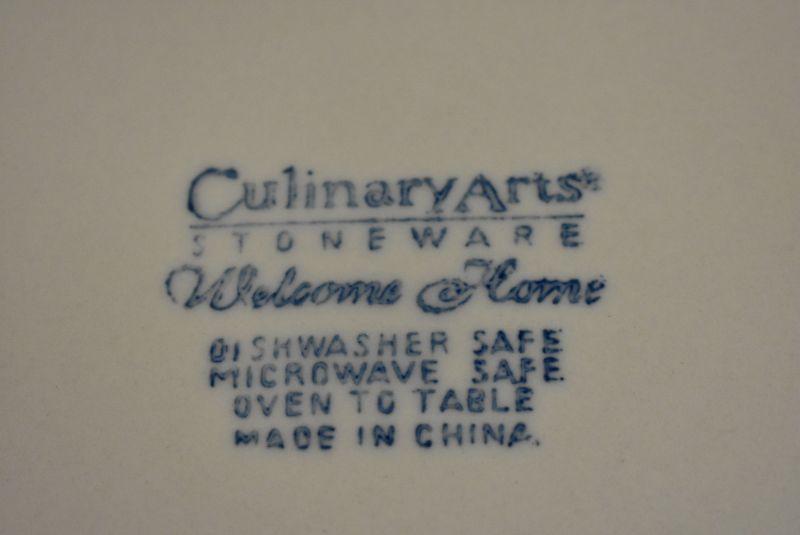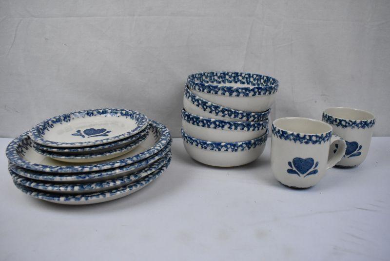 13 pc Dinnerware. Cream w/ Blue Hearts by Culinary Arts Stoneware "Welcome Home"