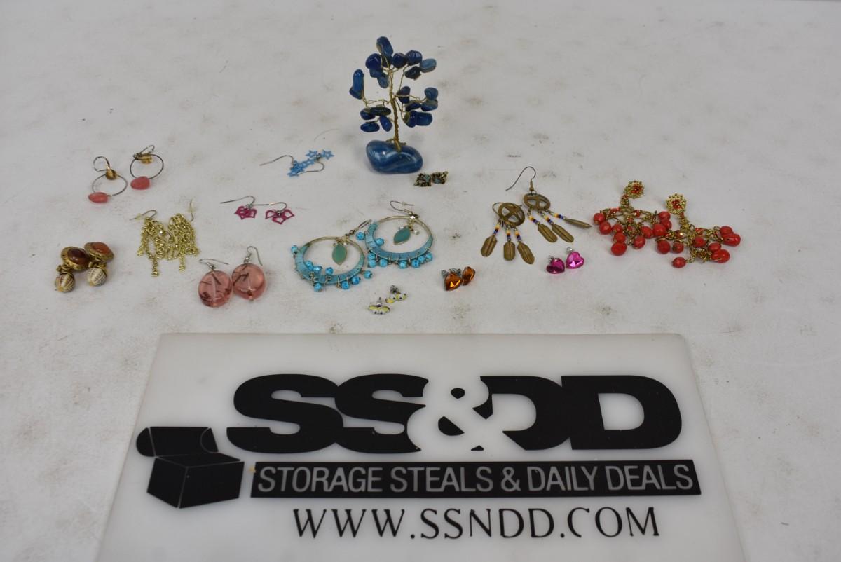 13 pc Earrings and Stone Tree