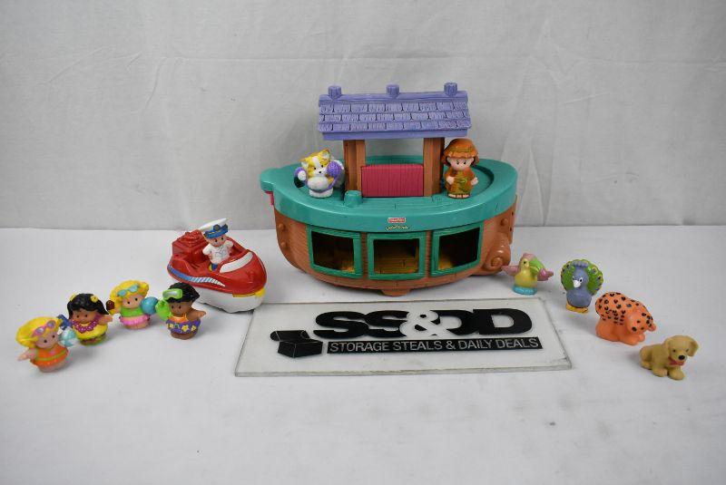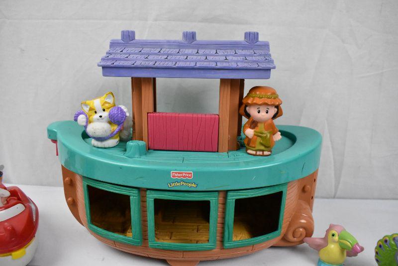 13 pc Fisher Price Little People Toys: Noah's Ark, Small Boat, 5 animals, & 6 people