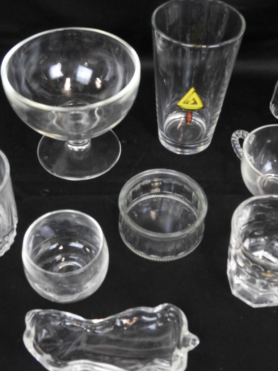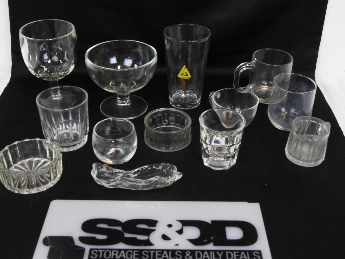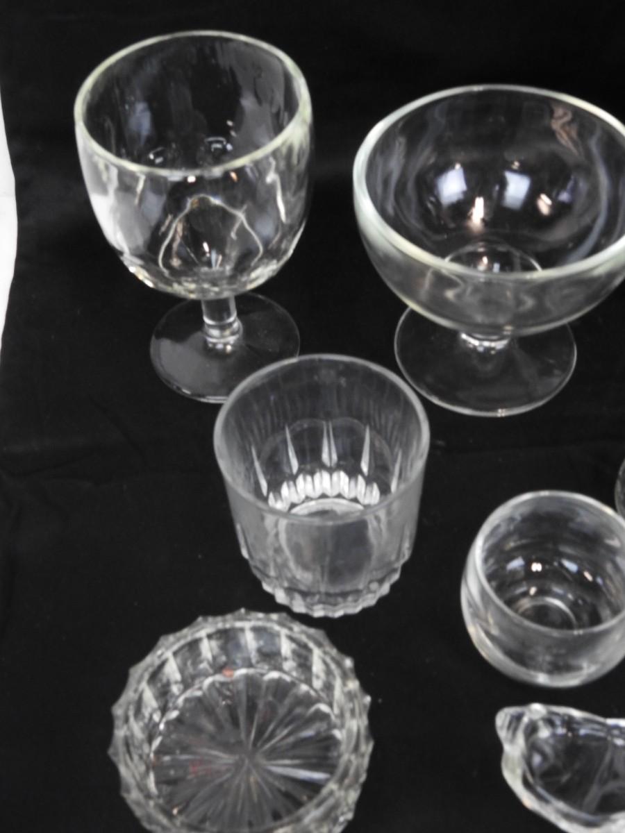 13 pc Misc Glass Items: Goblets, Glasses, Trinket Holders