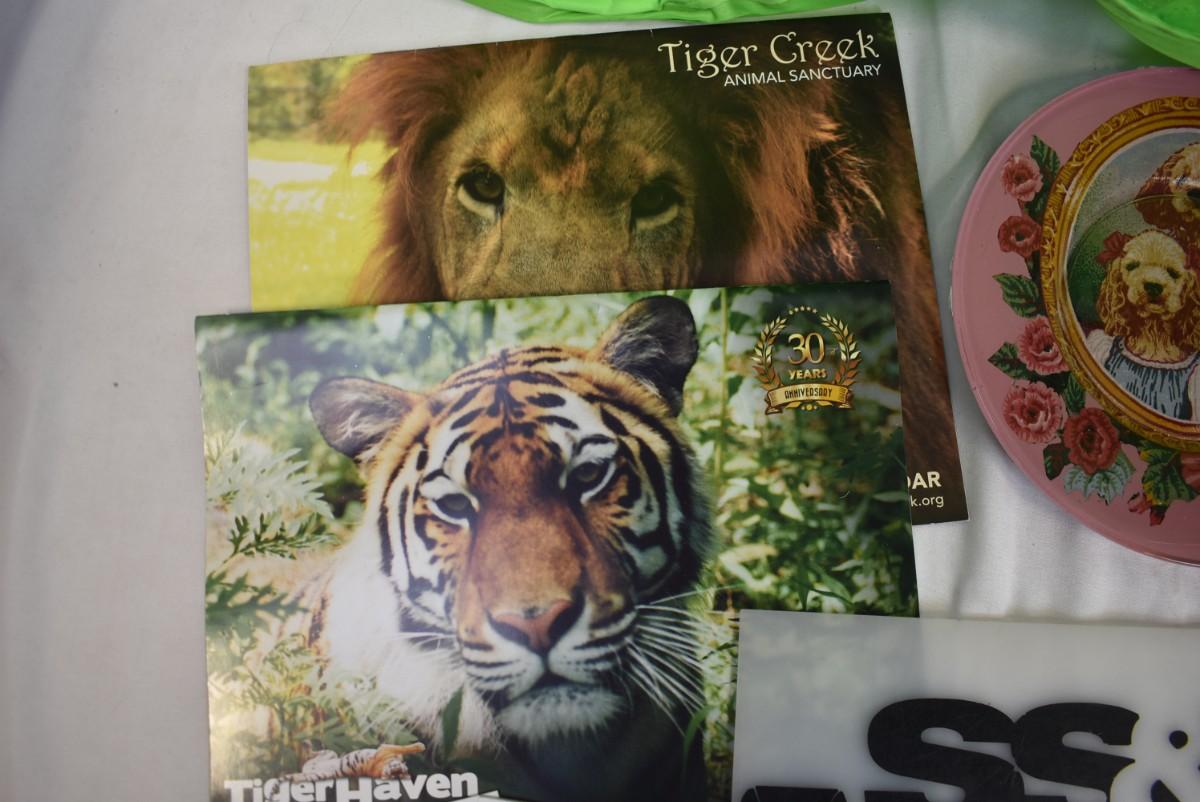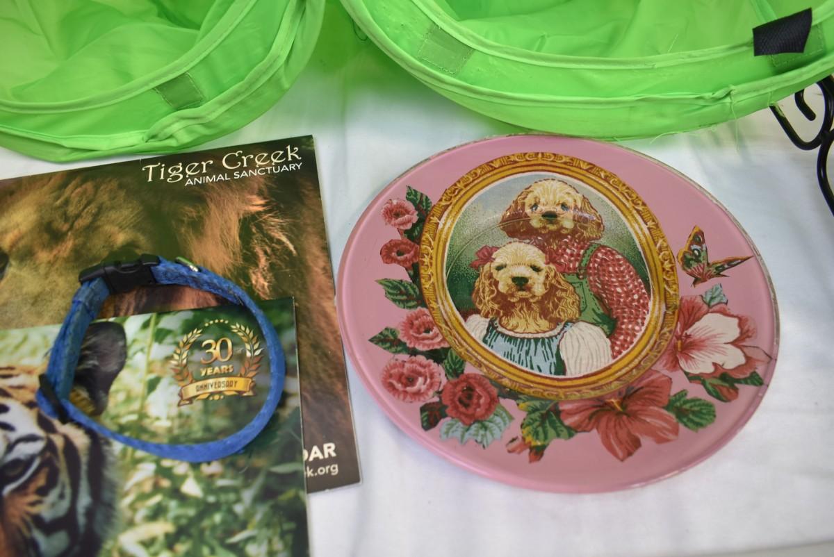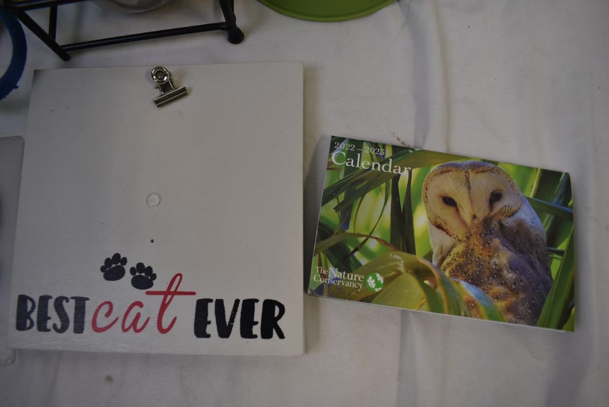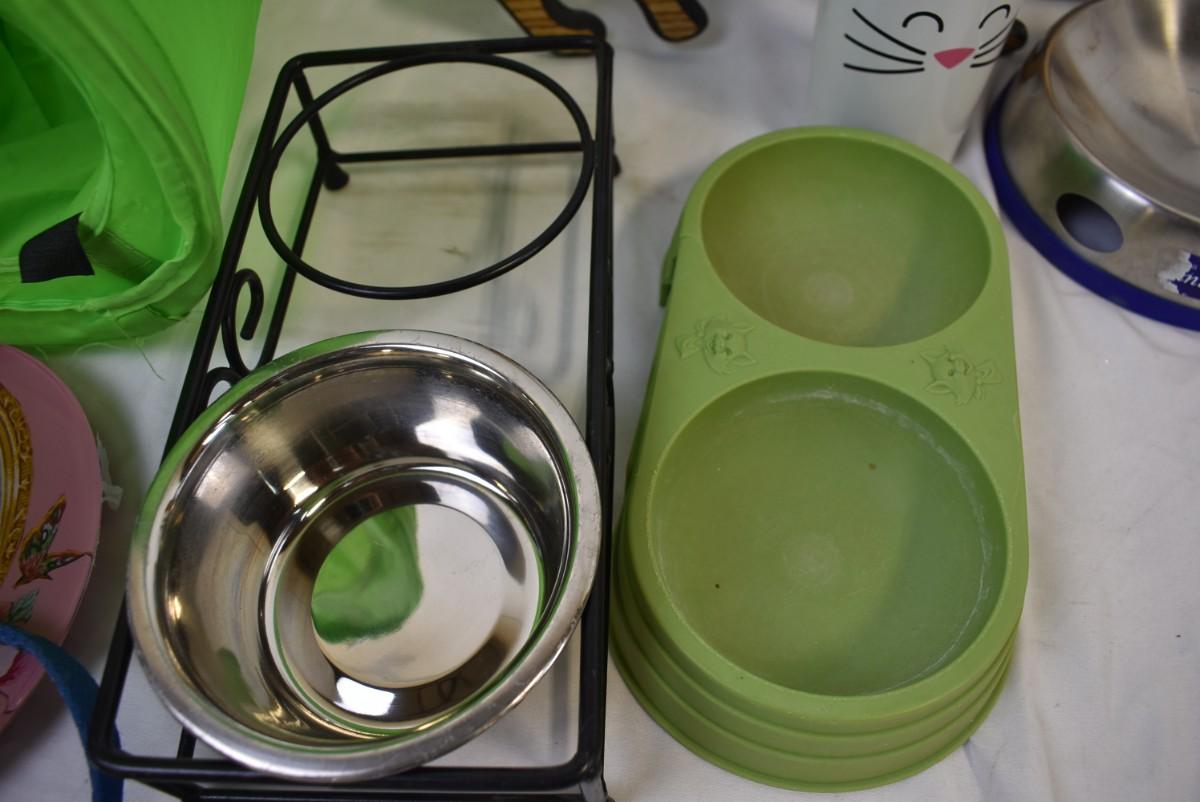 13 pc Pet Lot: Cat Bowls, Cat Tunnel, Cat Photo Frame, Animal Calendars