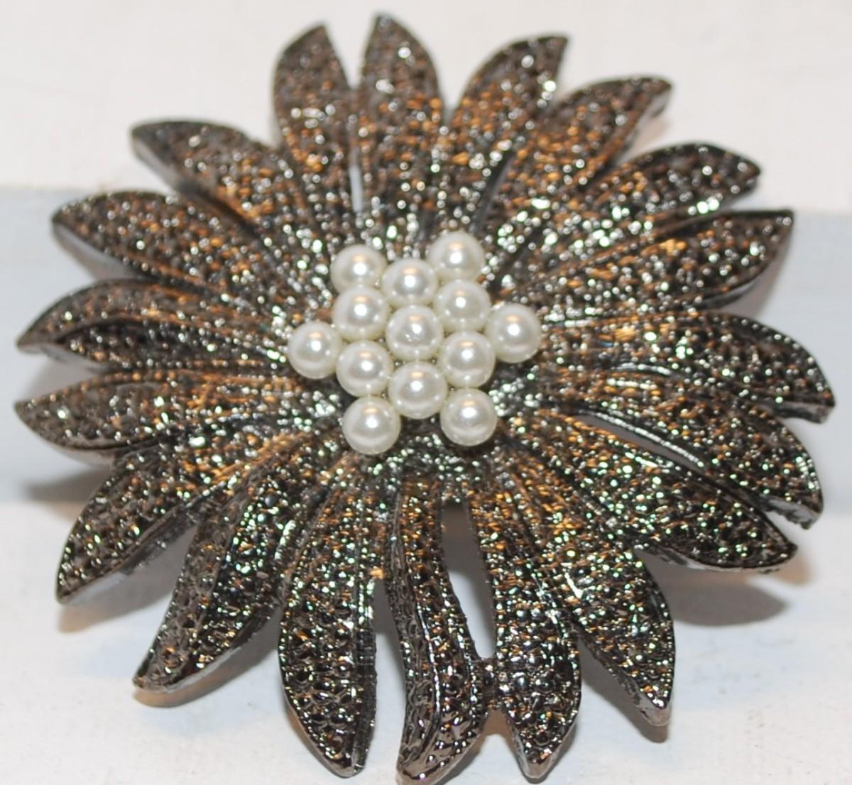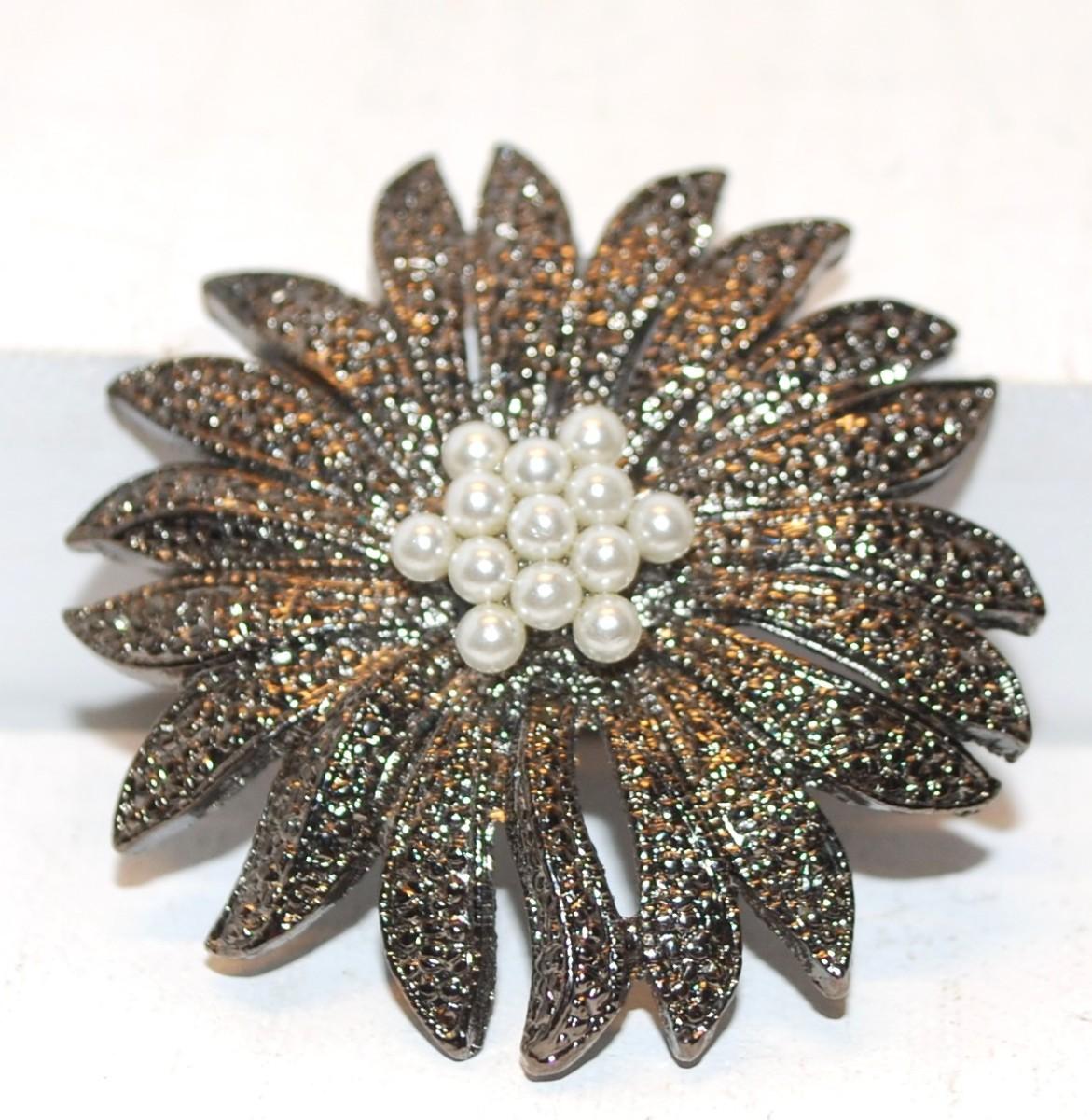 13 Pearls with Dark Gold Tone Flower Star Pin 1½"