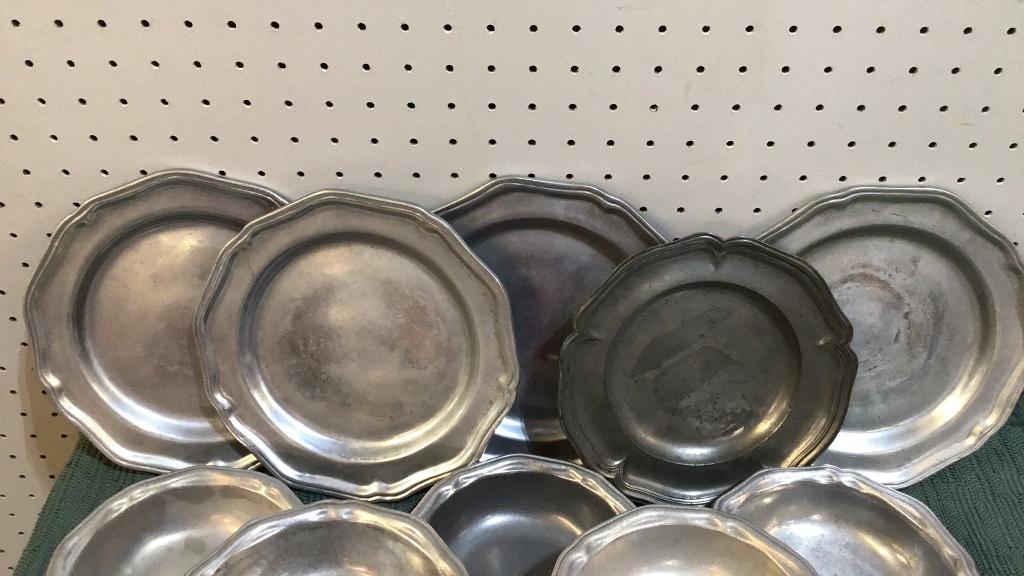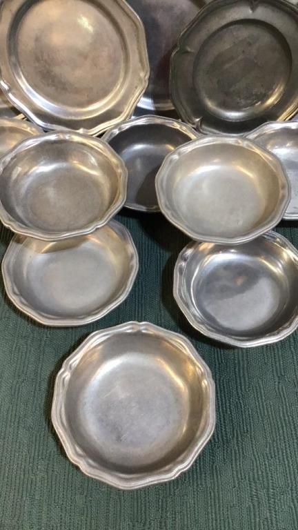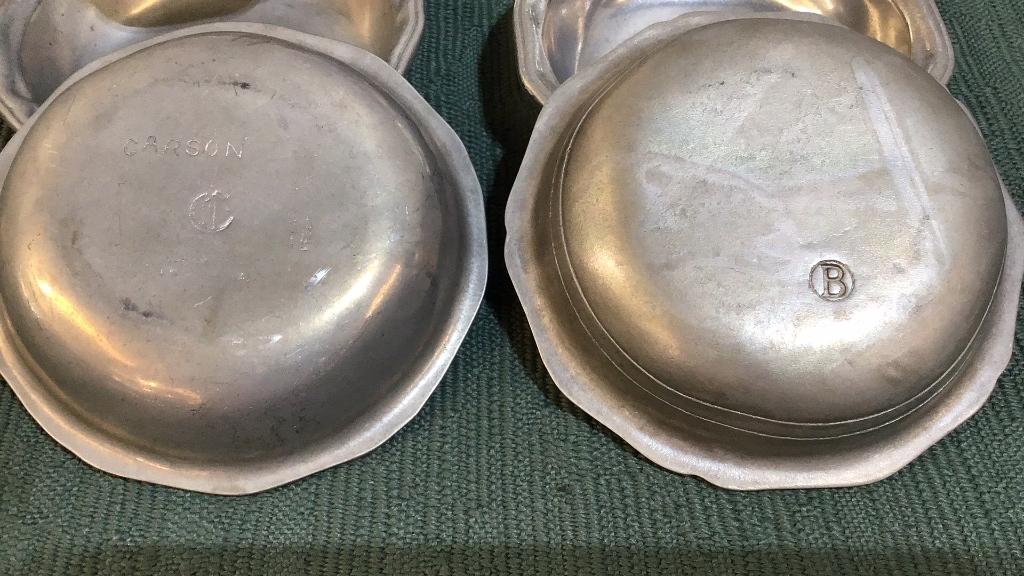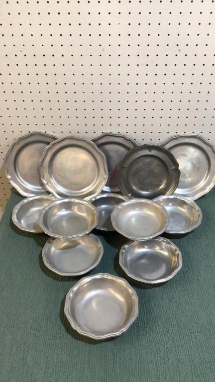 5 plates, 8 bowls, markings for Carson, Old Bradford Co., 1 indiscernible marked plate..9 inch plates, 7 inch bowls