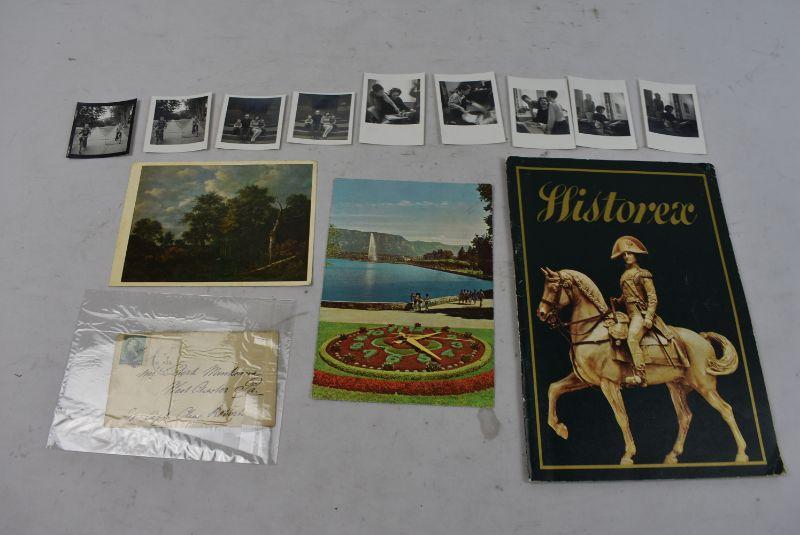 13 Piece Vintage Lot: 9 Photos, 2 Postcards, Letter, and Historex Booklet