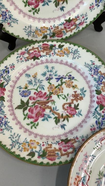 Pattern Chinese Trees? a collection of plates ..2-10 inch plates with green borders, red seal globe stampsÂ…2 10 inch, 3-8.5 inch rimmed bowls, 1 each 8 and 9 inch plates all with brown borders..( a additional 10 inch