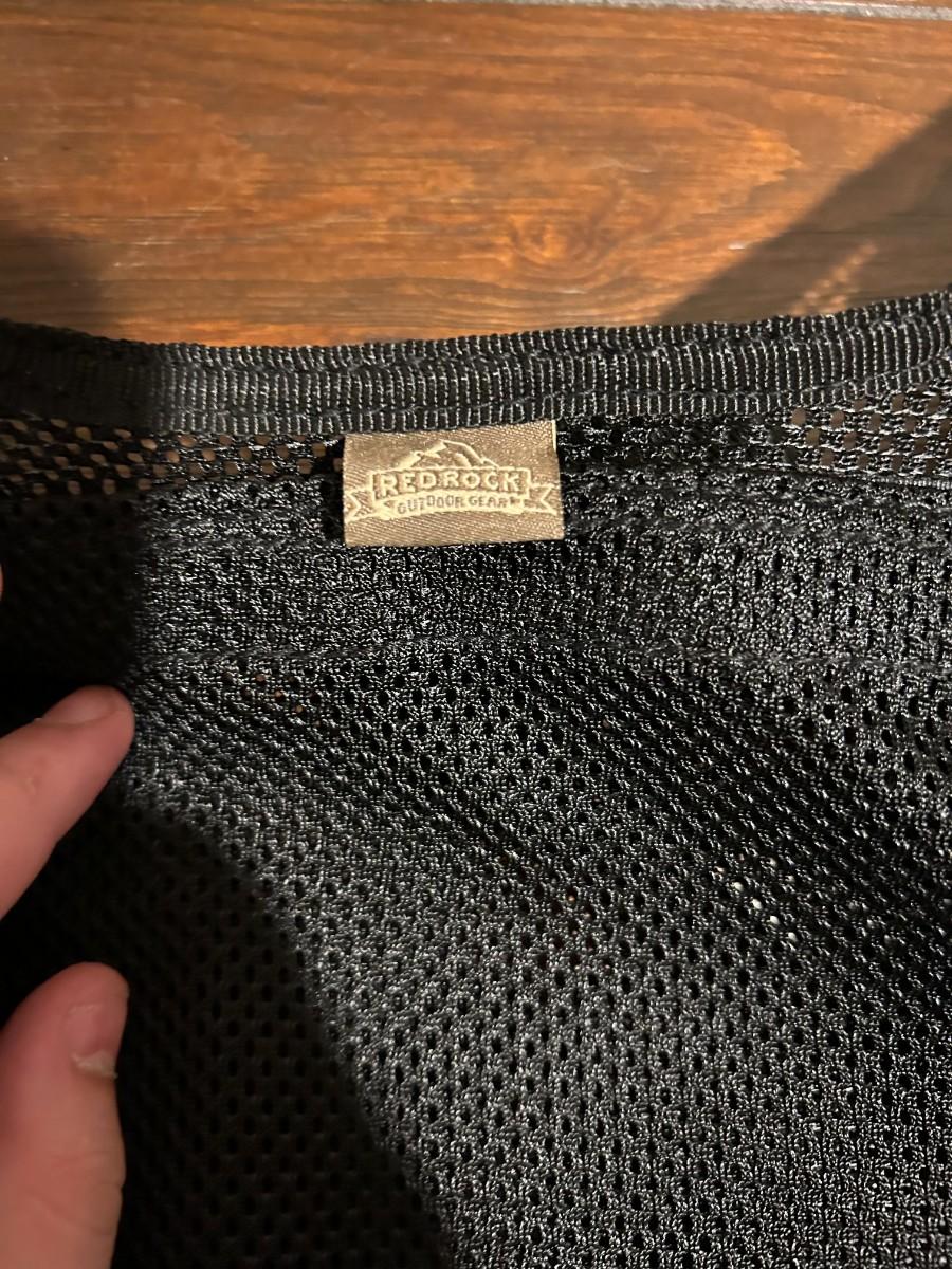 No size on any tags, these are adjustable both at the shoulder and sides.