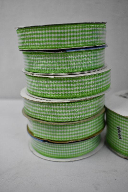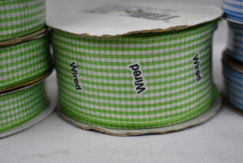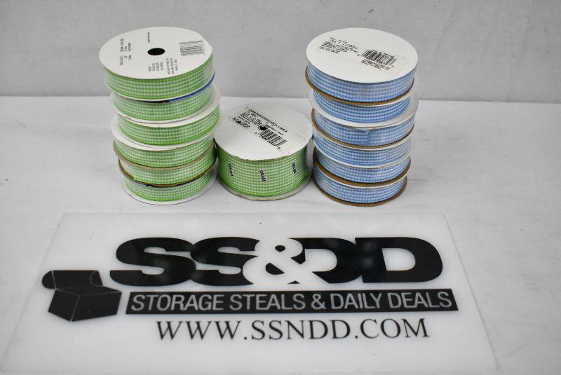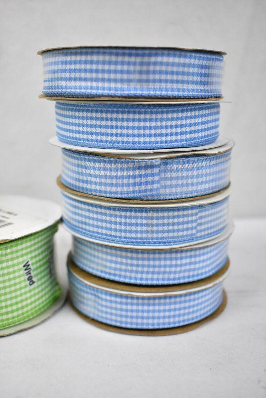 13 Rolls Gingham Ribbon, 6 Blue, 7 Green - New