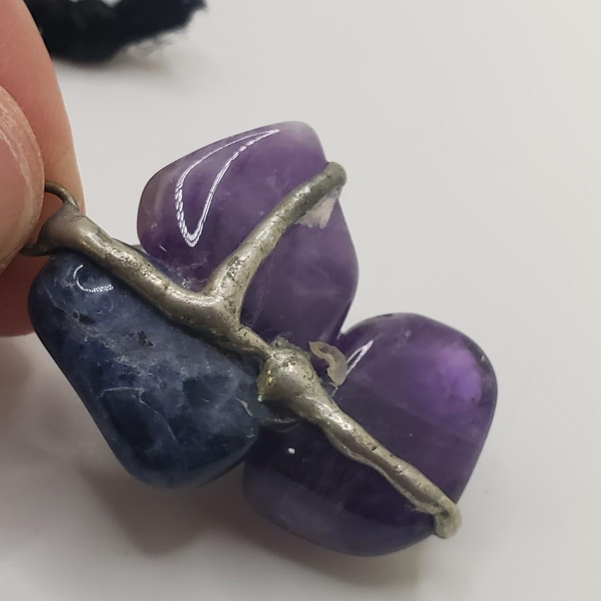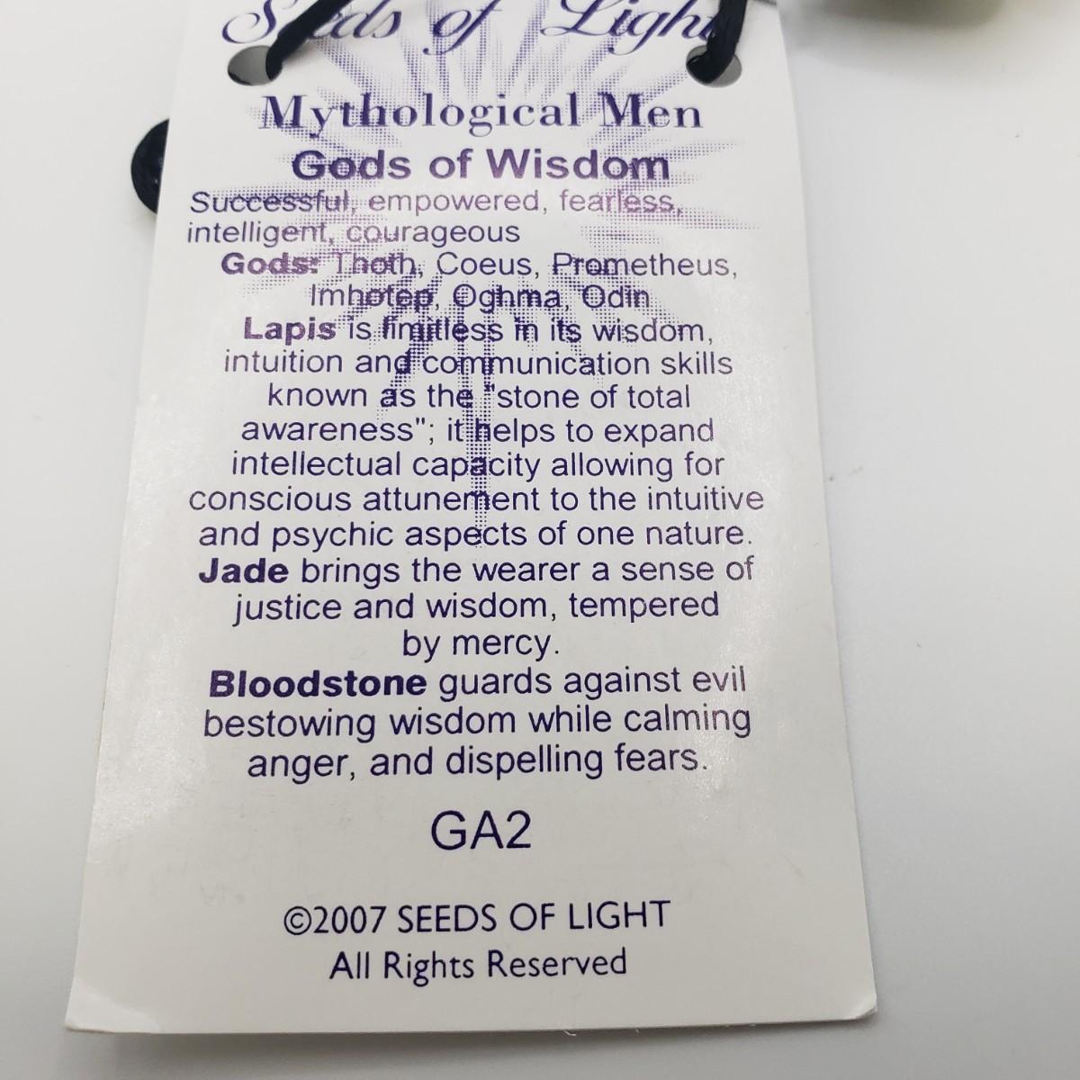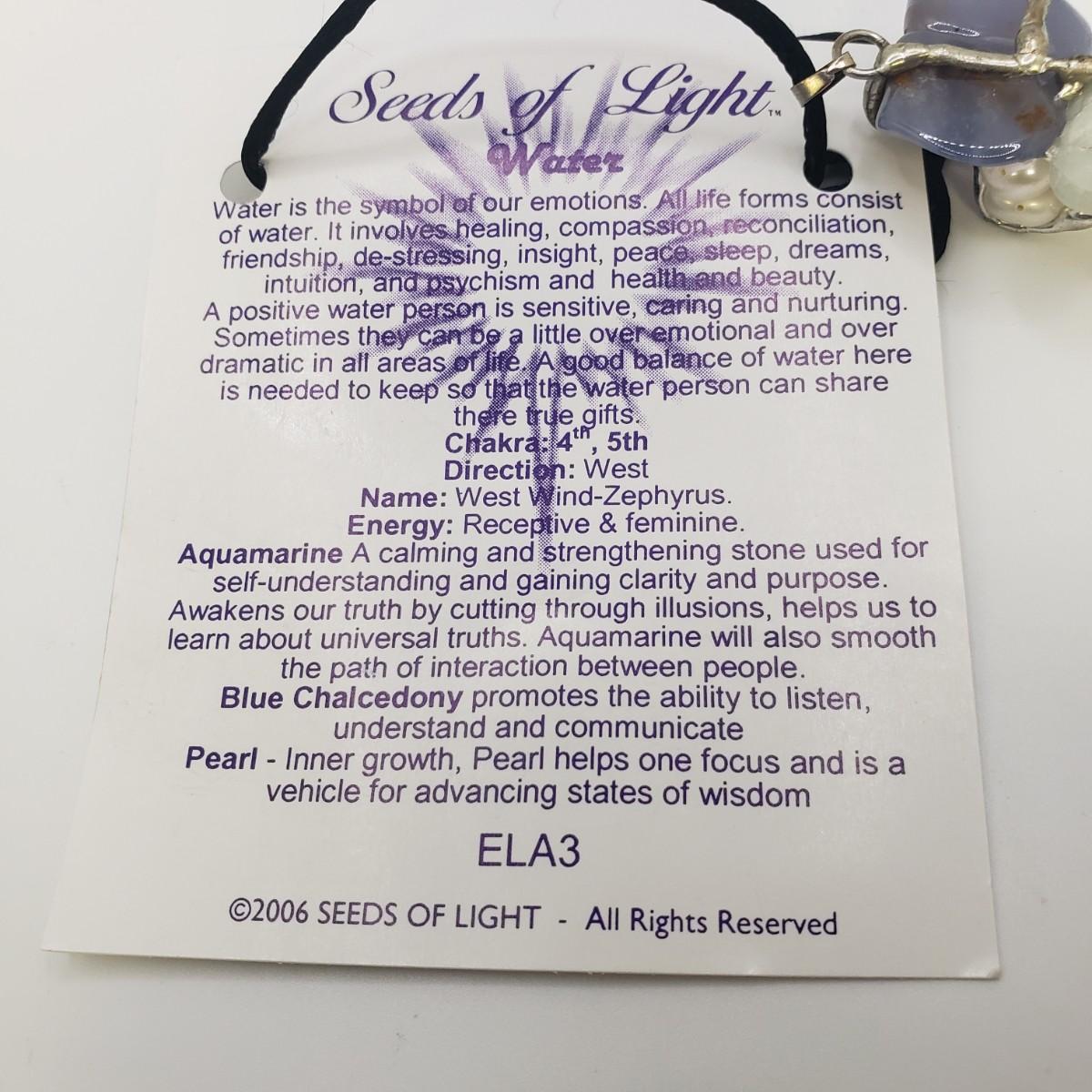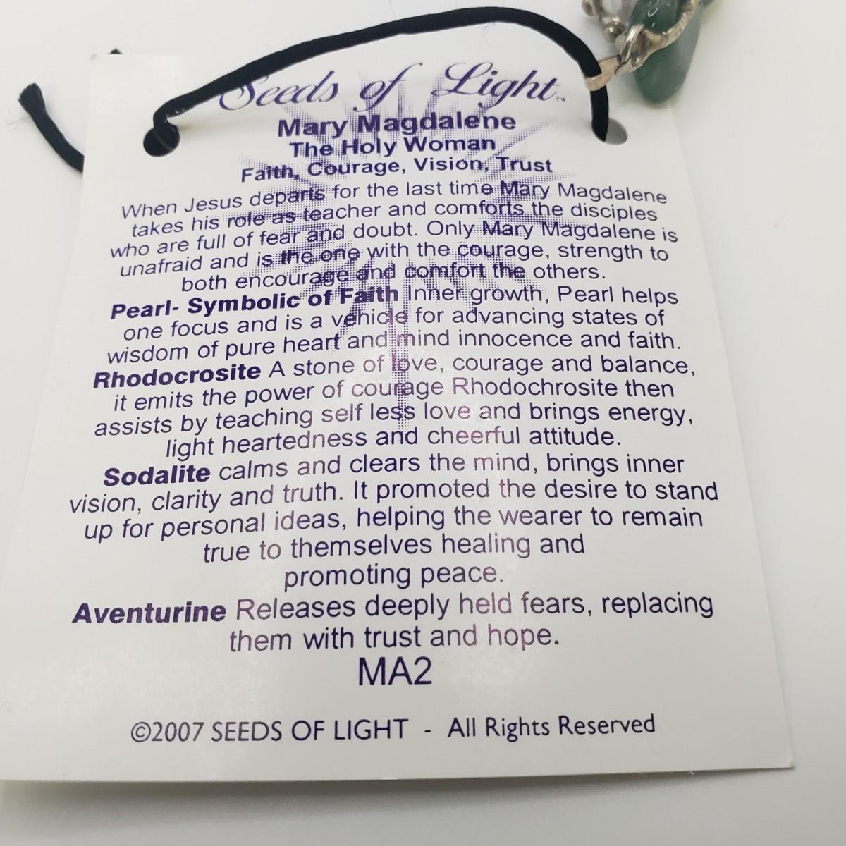 This 13 piece lot has a variety of Seeds of Light necklaces. Each conglomerate of gems has symbolic meaning. All necklaces except one has an identification card. The silky thread for each necklace measures 17" and is not tied off.