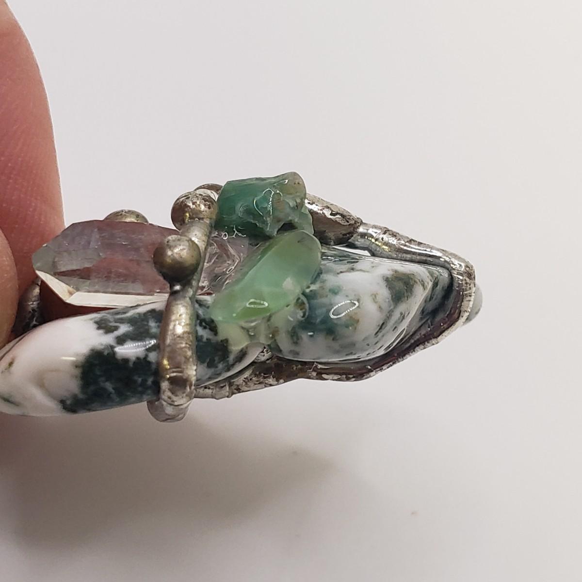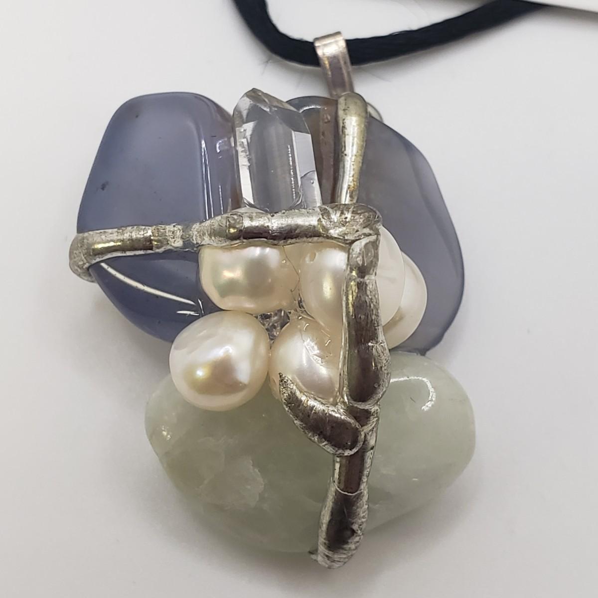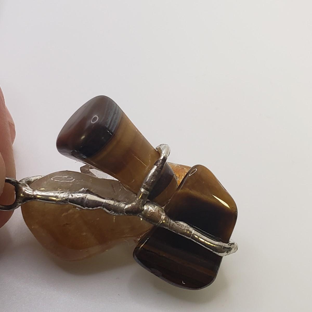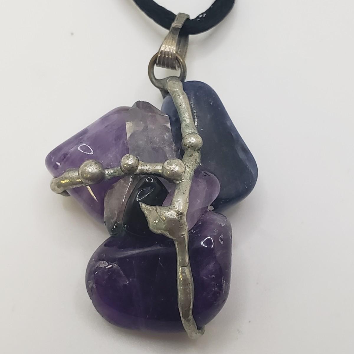 This 13 piece lot has a variety of Seeds of Light necklaces. Each conglomerate of gems has symbolic meaning. All necklaces except one has an identification card. The silky thread for each necklace measures 17" and is not tied off.