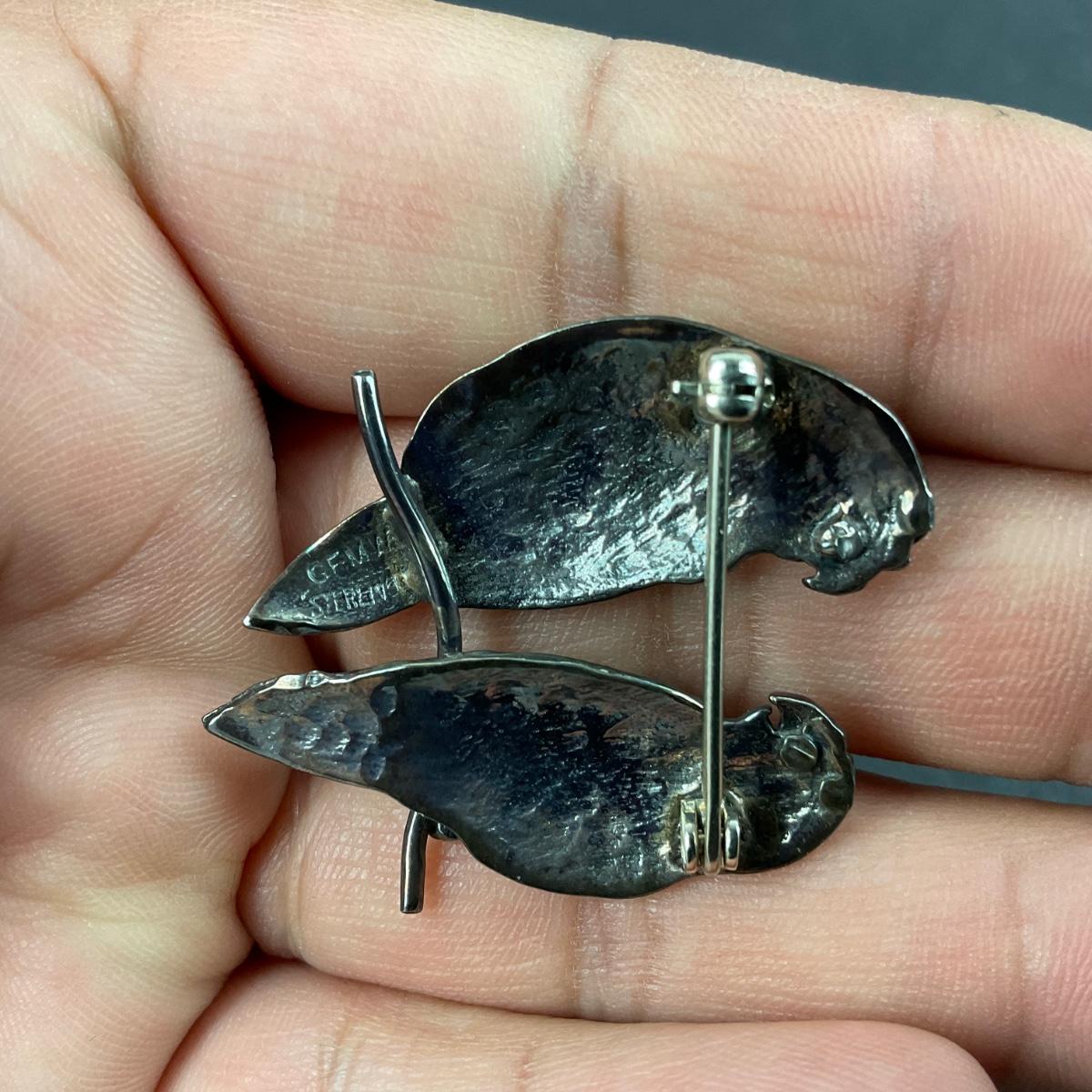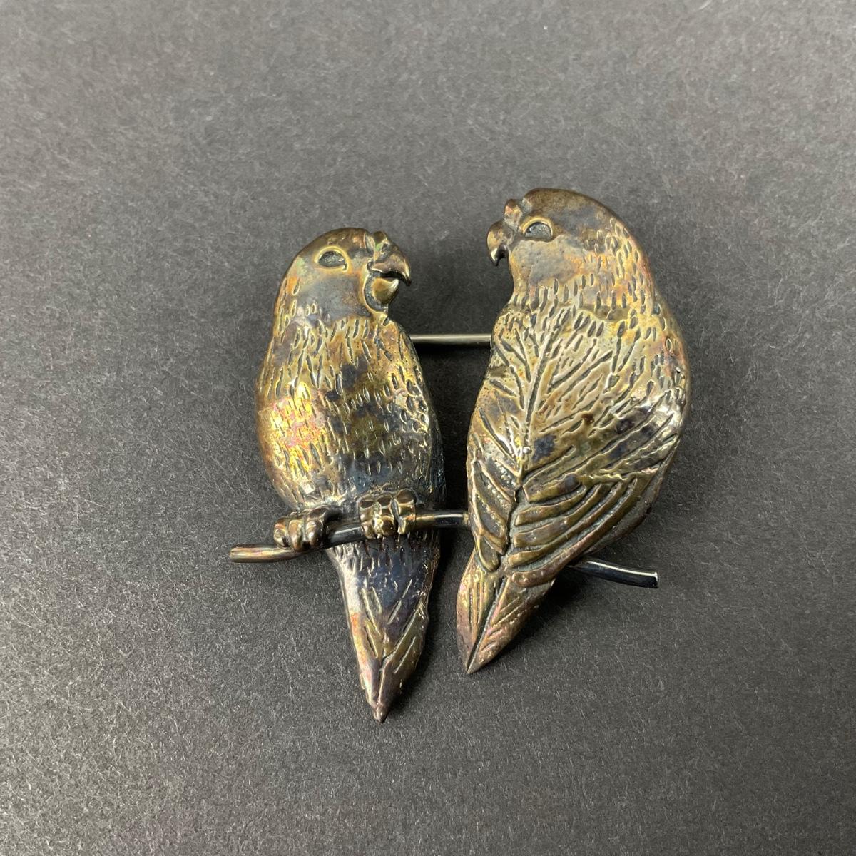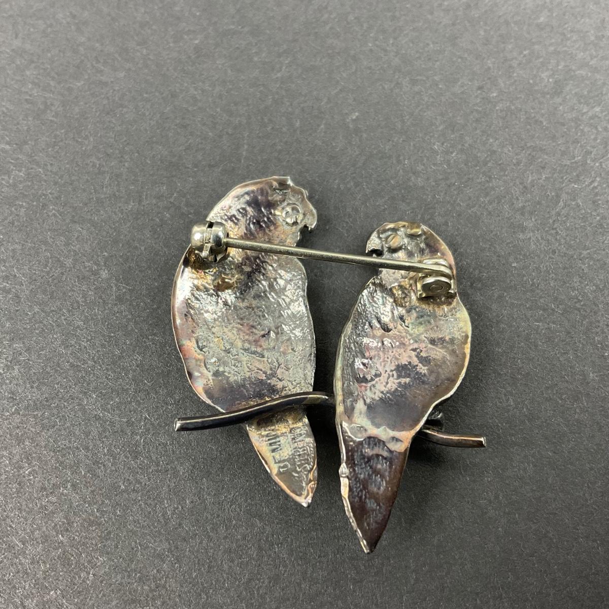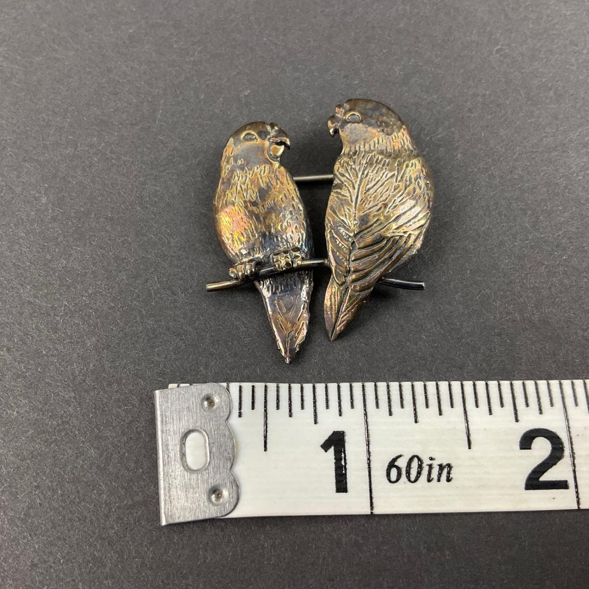 -13- STERLING | GFMW Parrot Couple Brooch | Marked