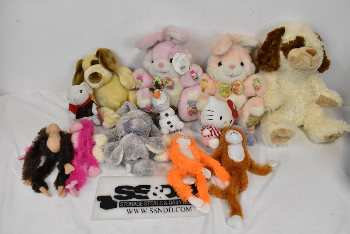 13 Stuffed Animals, Monkeys, Olaf, Easter Bunnies, Dogs