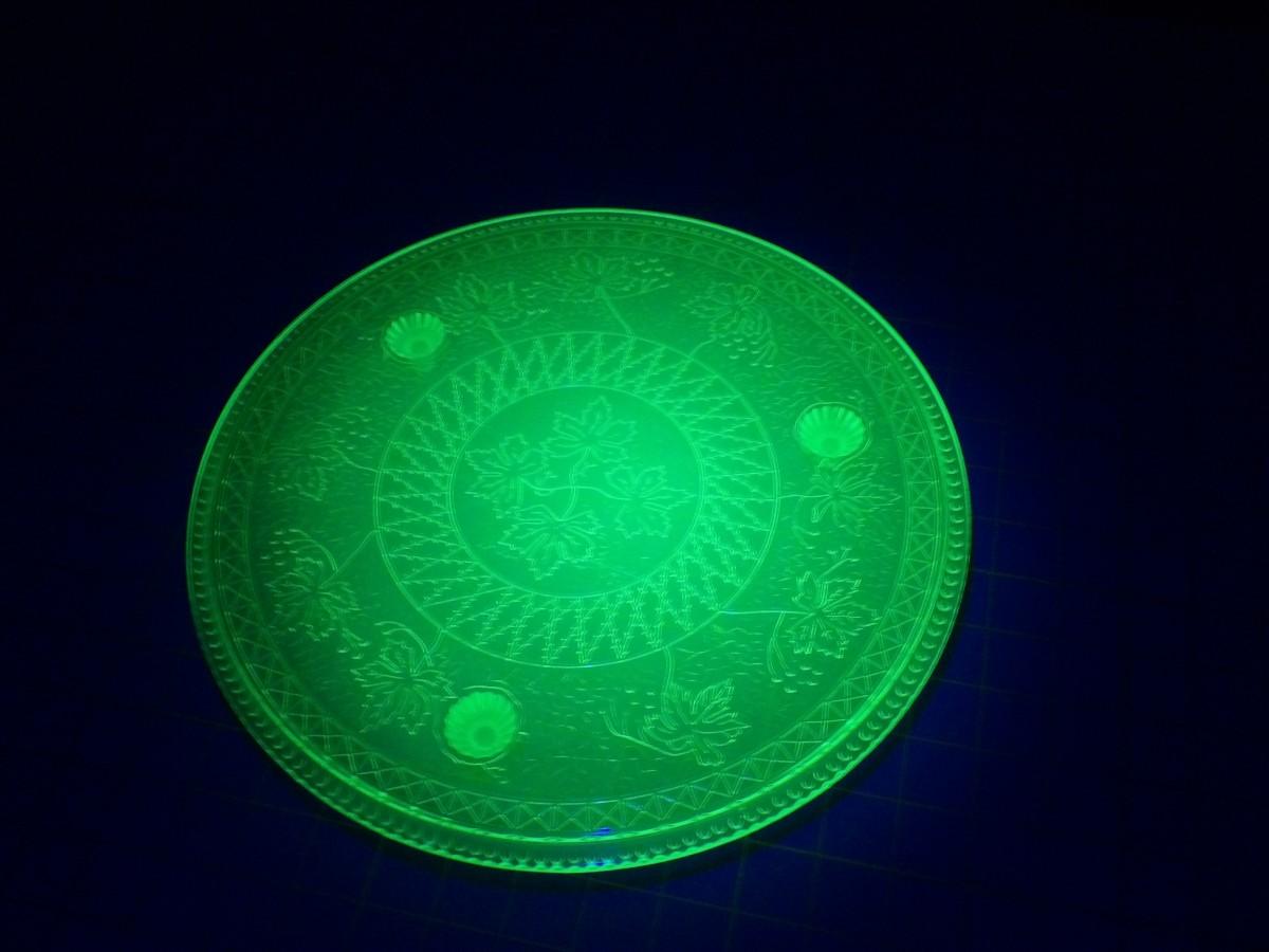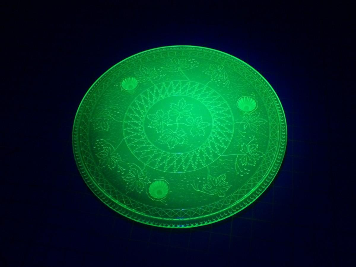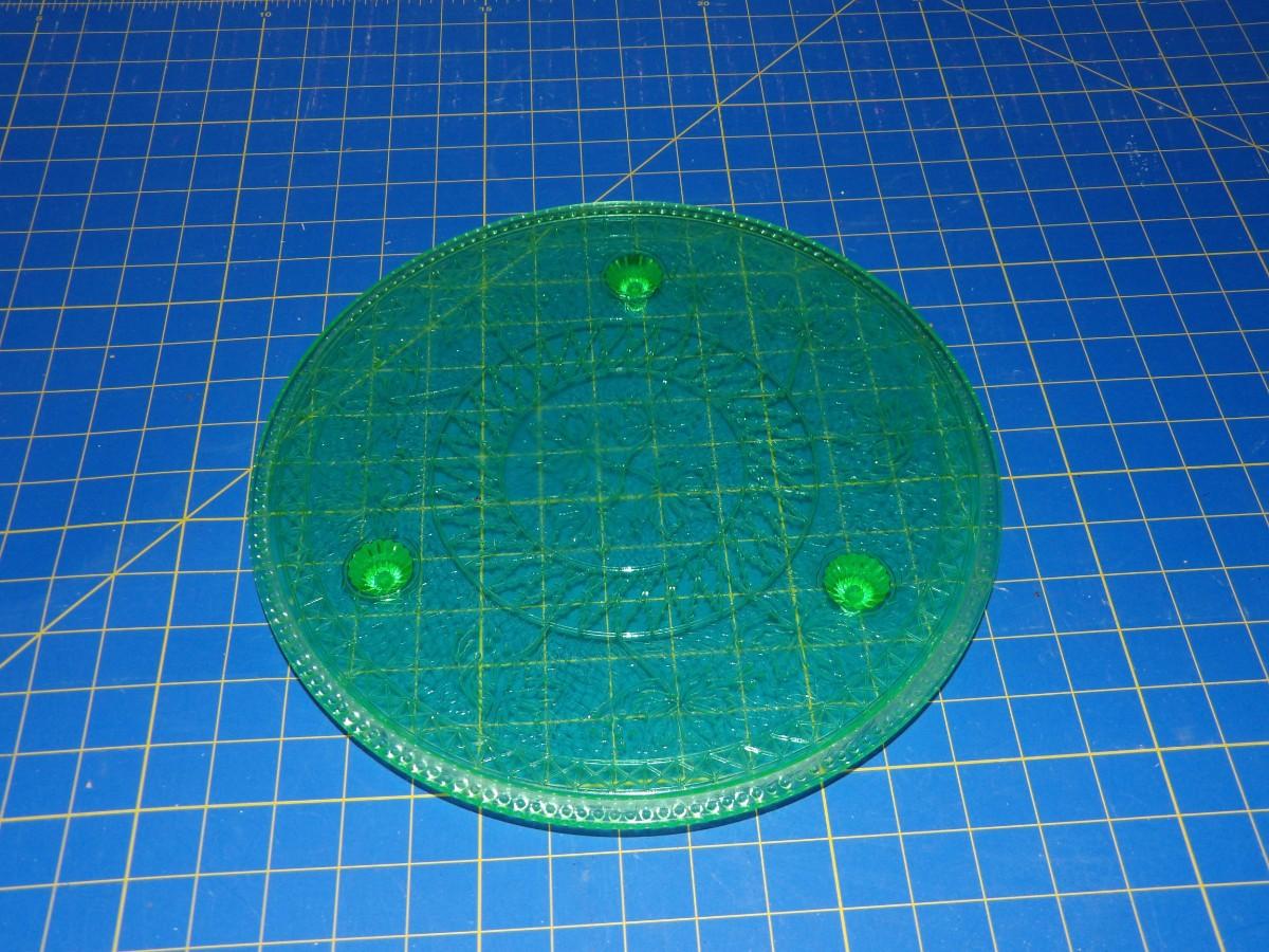 13" Uranium Glass 3 Footed Cake Stand