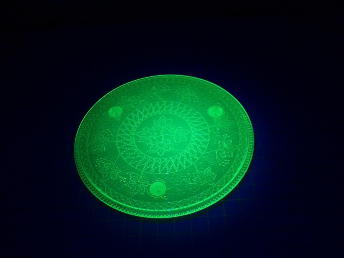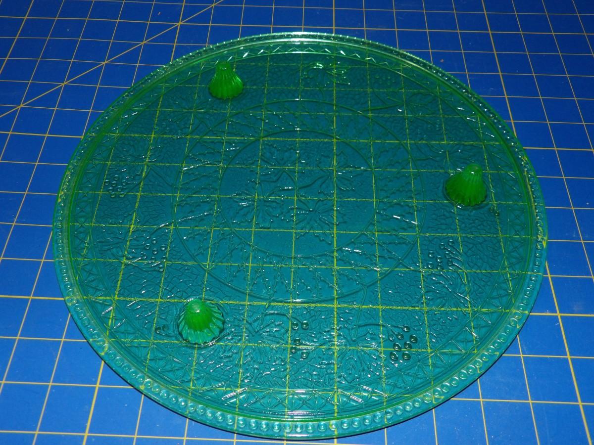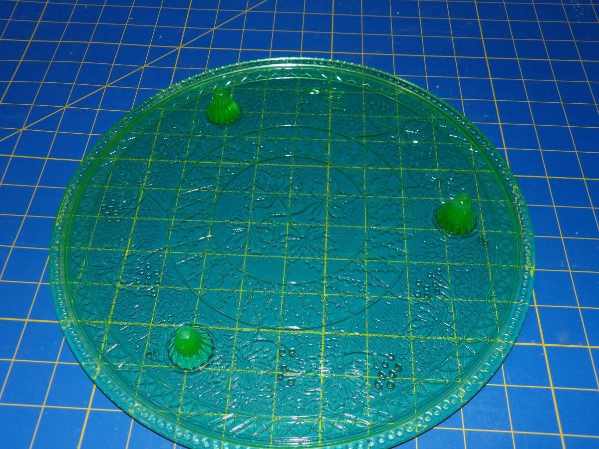 13" Uranium Glass 3 Footed Cake Stand