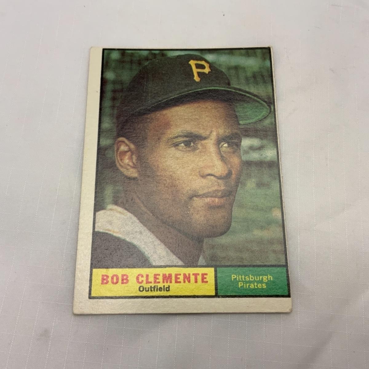 Excellent Vintage Bob Clemente TOPPS Card #388 from the 1961 Series. Clemente Played for the Pittsburgh Pirates and is a Hall of Fame Player. Card comes from the original owner. Please see photos for details and condition. ::: Shipping is available on this lot. If you require shipping you must let us know at the close of the auction. We will coordinate with you after the item has been won. Shipping fees will include insurance up to or exceeding the value of all items being mailed. If you have any questions regarding this lot please contact the auctioneer either via this website, by direct email or by phone. PICK UP TIMES and other important information can be found in the TERMS and DESCRIPTION of the auction. Please take a look for pertinent information. Thanks!