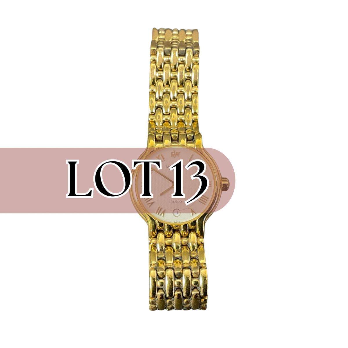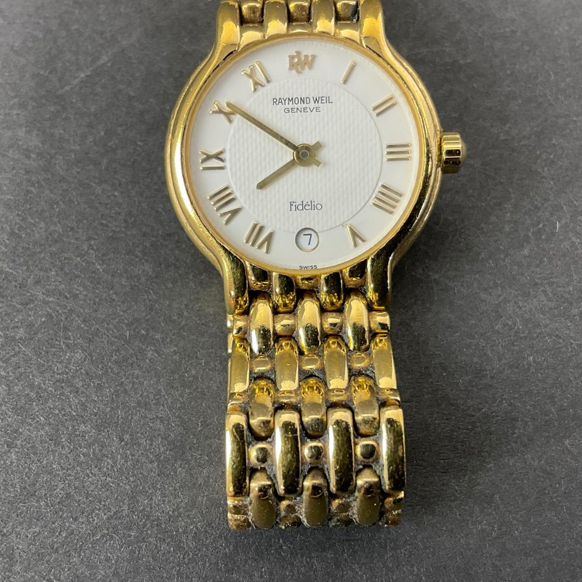 One vintage Raymond Weil Geneva Fideilo Swiss watch. This piece has been tested and has a new battery. The watch may need to be adjusted as it appears to be running slow. However it is in working order. Please see photos for details and condition. Any condition statement is given as a courtesy to a client, is an opinion, and should not be treated as a statement of fact. Reference to condition written, oral or within a condition report shall not be regarded as a full account of condition and may not include all defects, alterations, or restorations. Absence of a condition report does not imply a lot is flawless or lacking imperfections or damage. Katherine’s Auction & Appraisal Service shall have no responsibility for any error or omission. Returns shall not be accepted on the basis of condition. ::: Shipping is available on this lot. If you require shipping you must let us know at the close of the auction. We will coordinate with you after the item has been won. Shipping fees will include insurance up to or exceeding the value of all items being mailed. If you have any questions regarding this lot please contact the auctioneer either via this website, by direct email or by phone. PICK UP TIMES and other important information can be found in the TERMS and DESCRIPTION of the auction. Please take a look for pertinent information. Thanks!