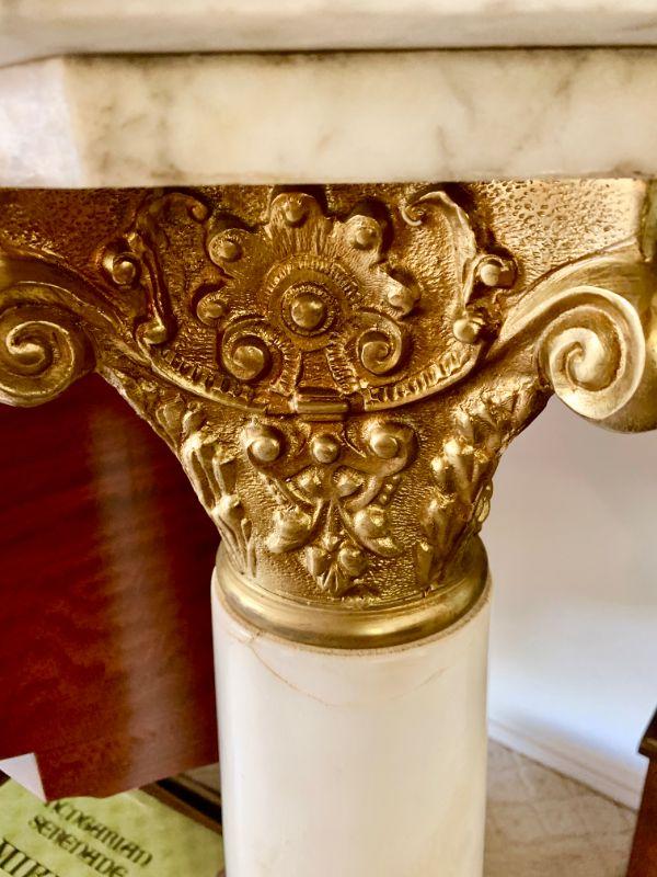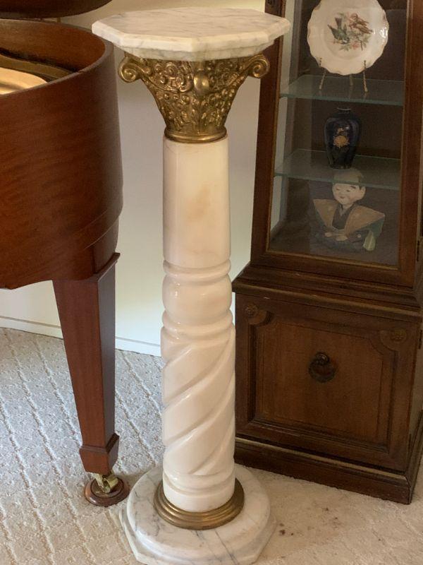 Beautiful marble pedestal. Gold painted trip. 42" tall