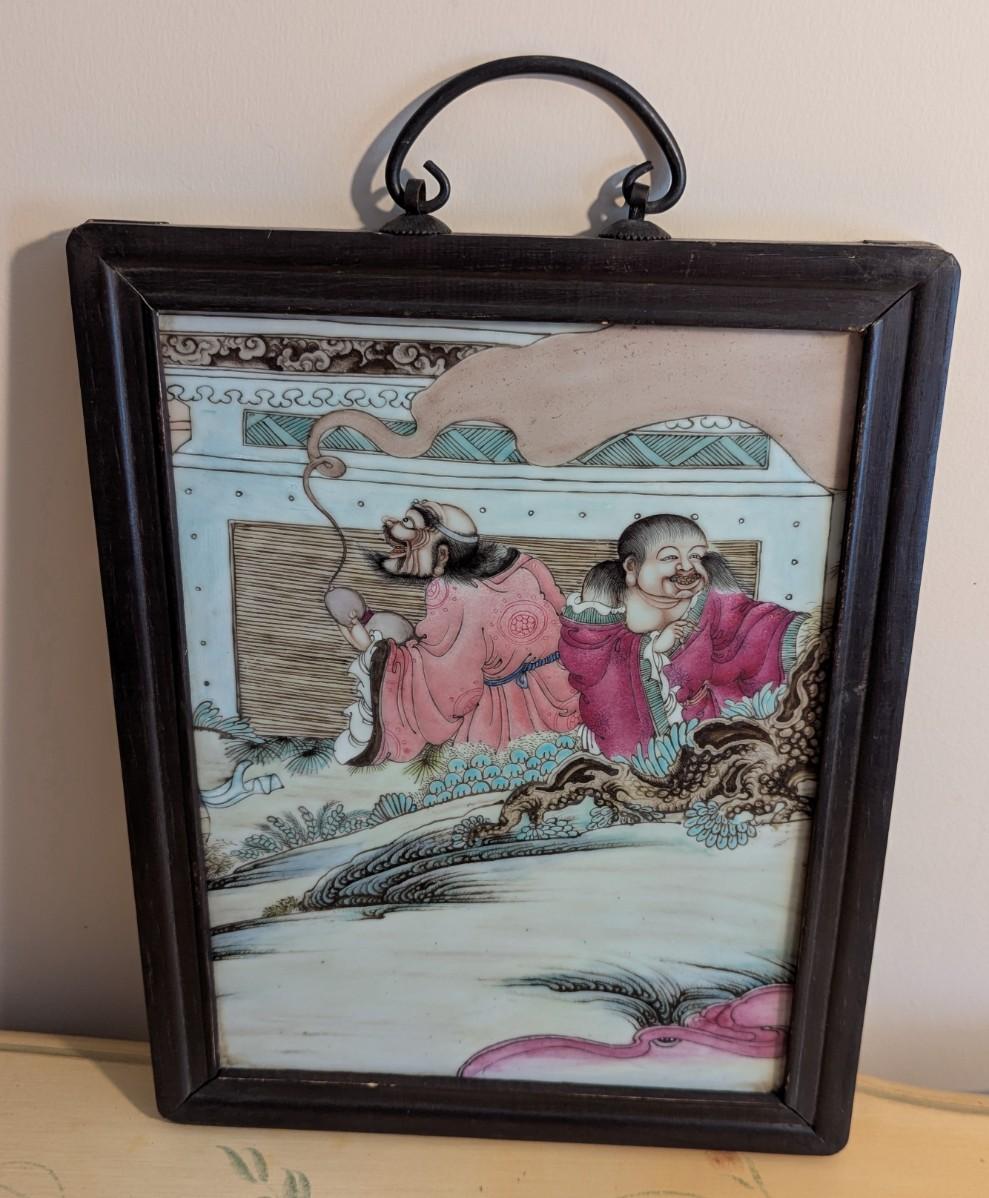 13" x 10" Chinese Famille Rose Porcelain Plaque