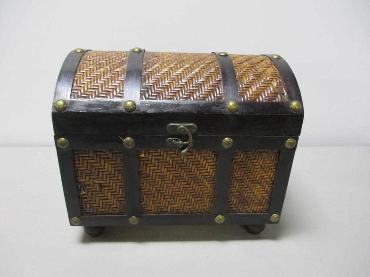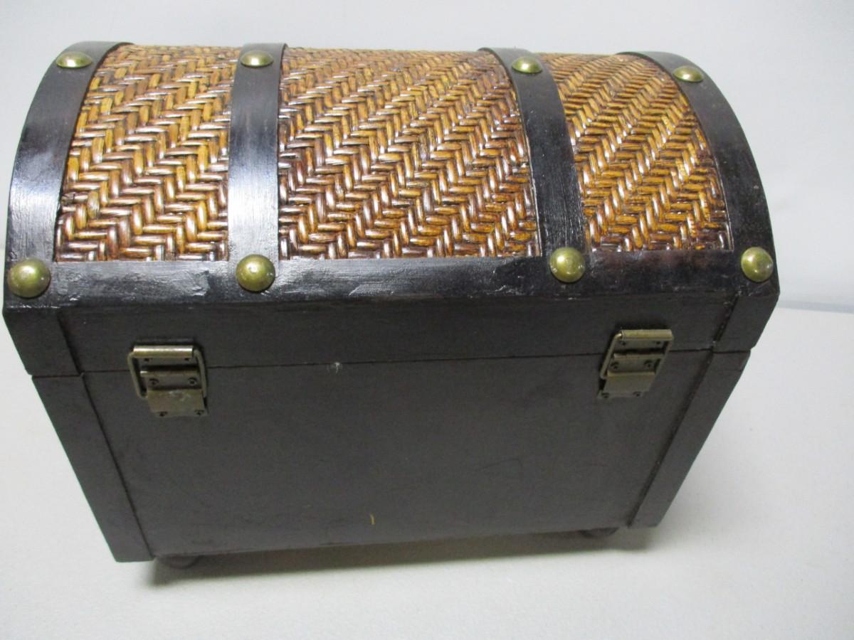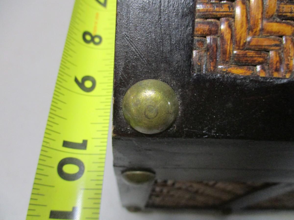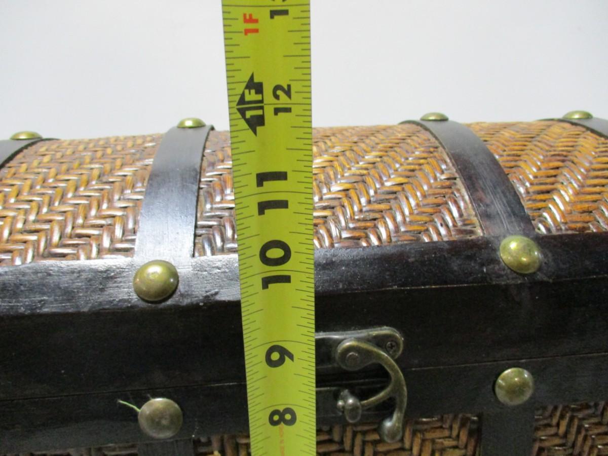 Weave and Slat Brass Button 13" x 10" Cupboard Top Storage Box