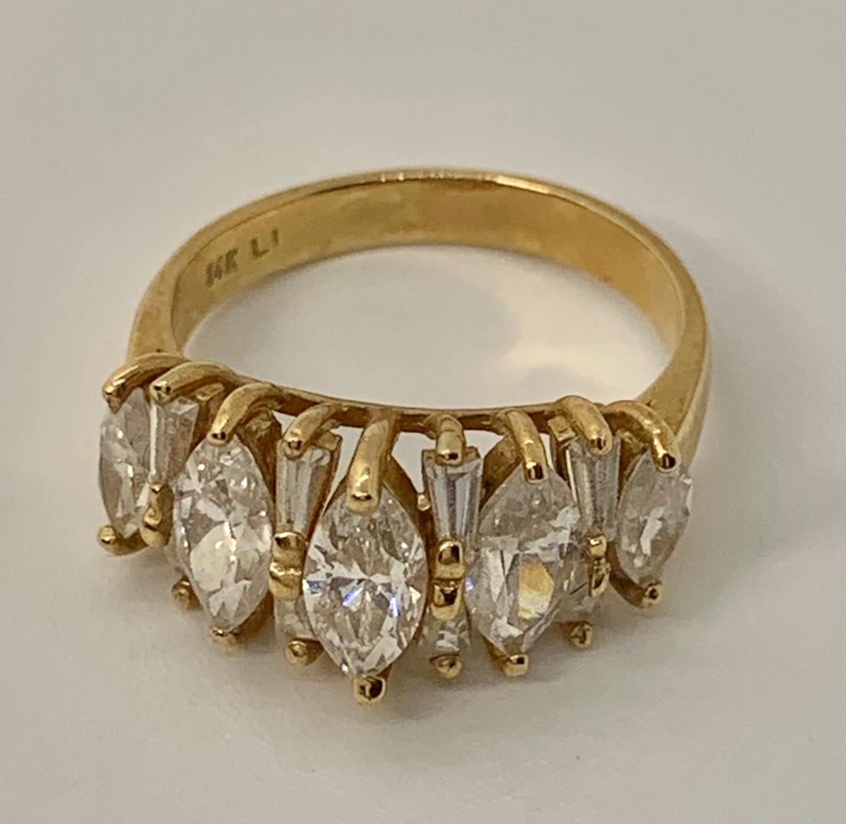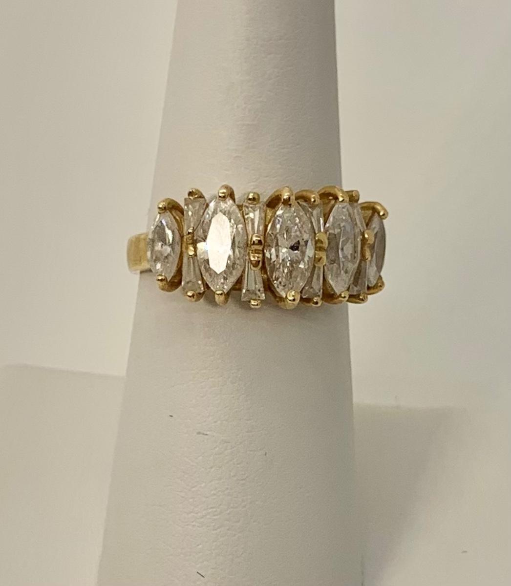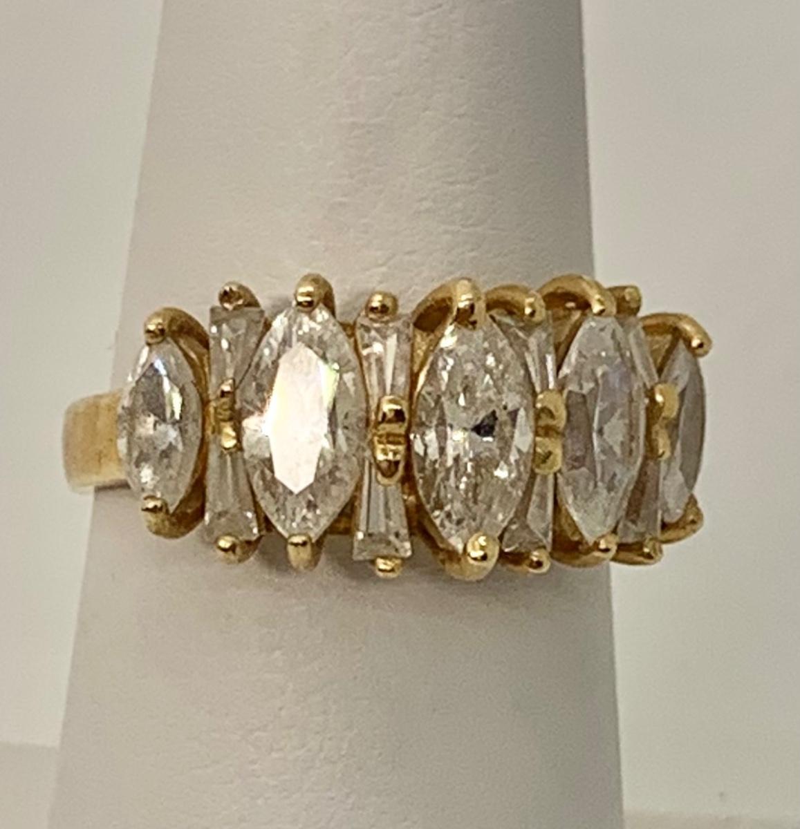 130:  4.6g 14K LI yellow gold multiple marquis cut Cubic Zirconia's