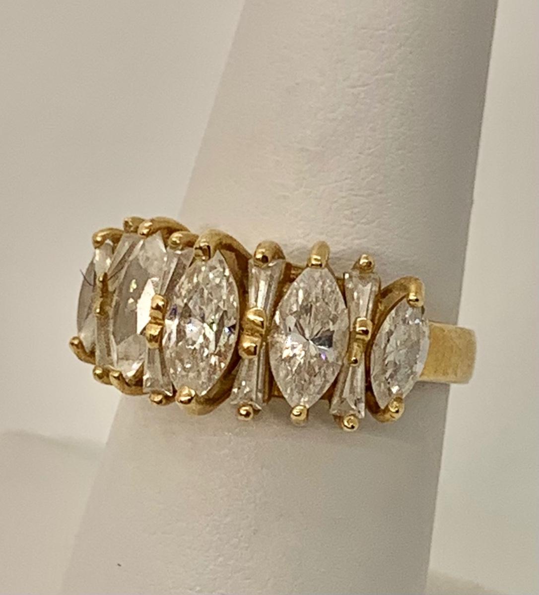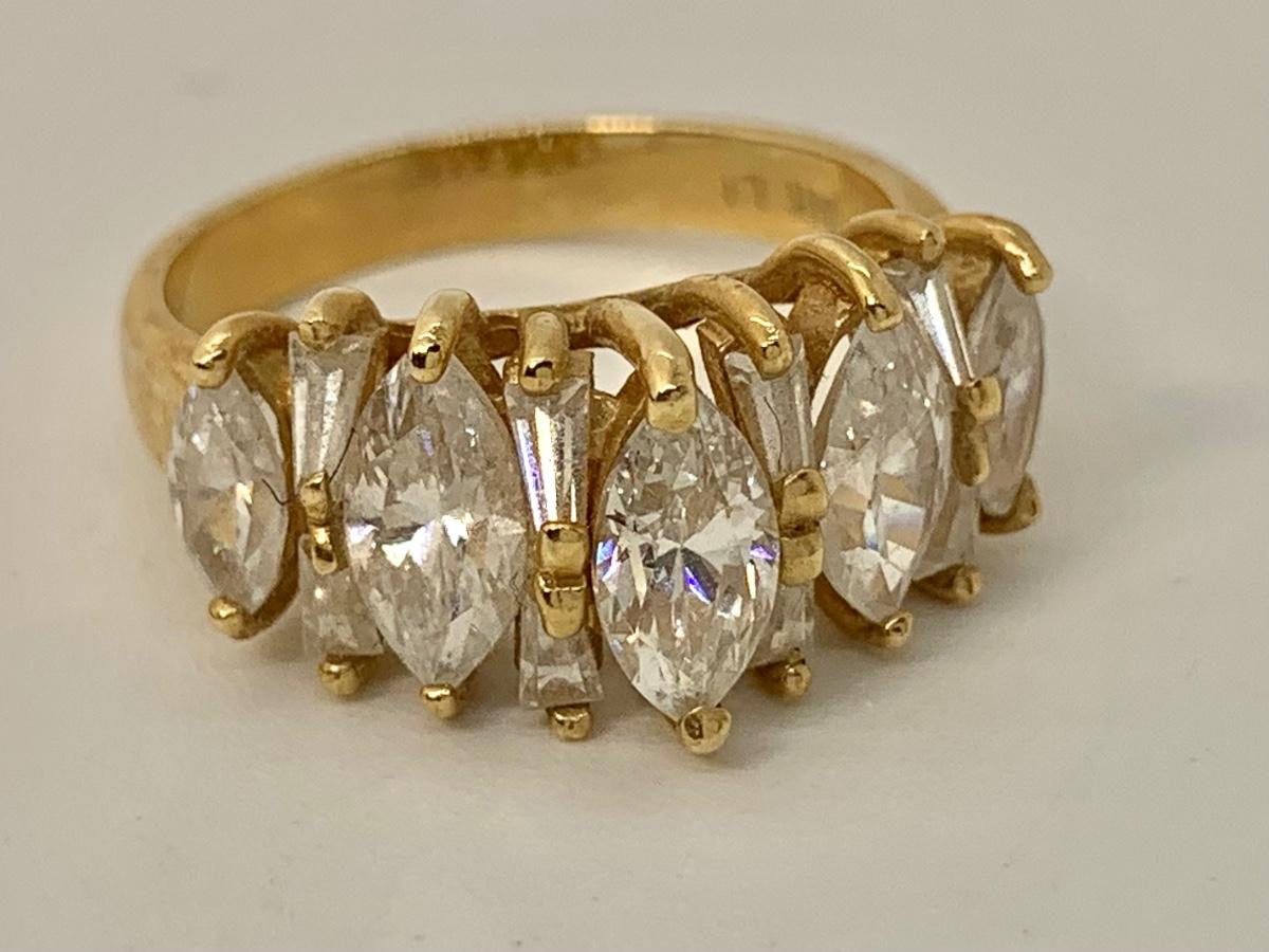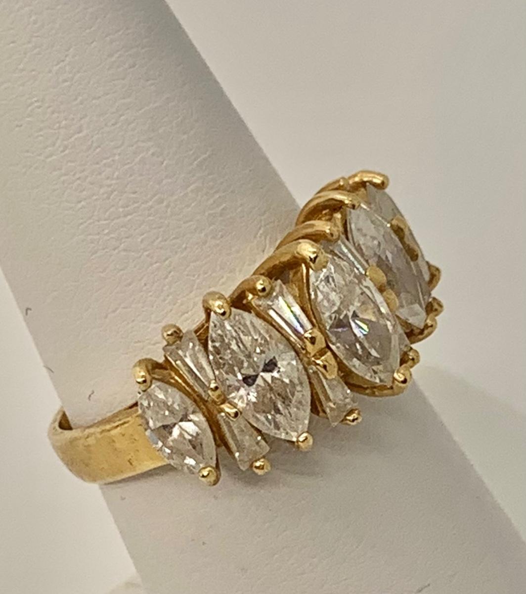 130:  4.6g 14K LI yellow gold multiple marquis cut Cubic Zirconia's