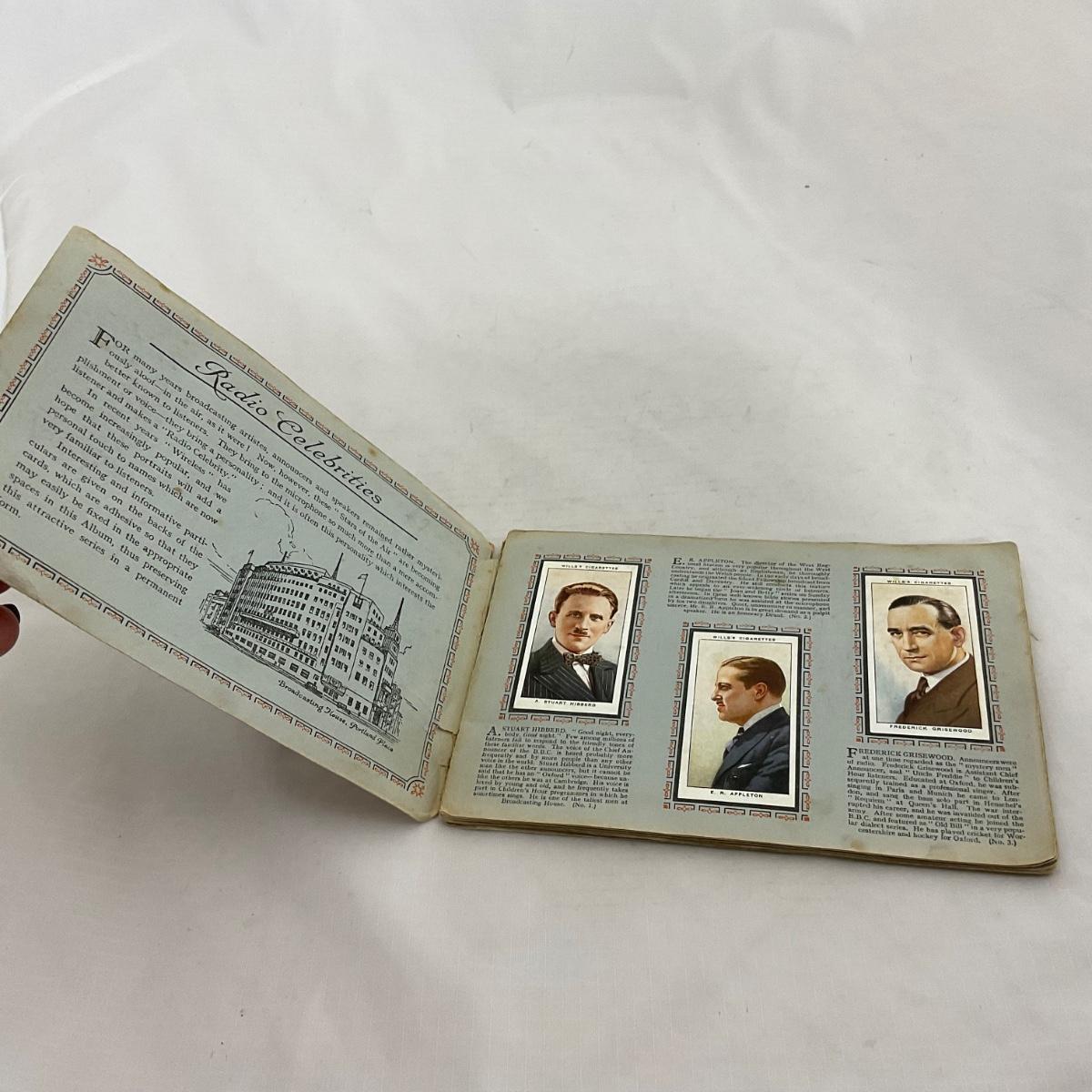 One 1930s radio celebrities Wils Cigarette cards set in book. Please see photos for details and condition. ::: Shipping is available on this lot. If you require shipping you must let us know at the close of the auction. We will coordinate with you after the item has been won. Shipping fees will include insurance up to or exceeding the value of all items being mailed. If you have any questions regarding this lot please contact the auctioneer either via this website, by direct email or by phone. PICK UP TIMES and other important information can be found in the TERMS and DESCRIPTION of the auction. Please take a look for pertinent information. Thanks!