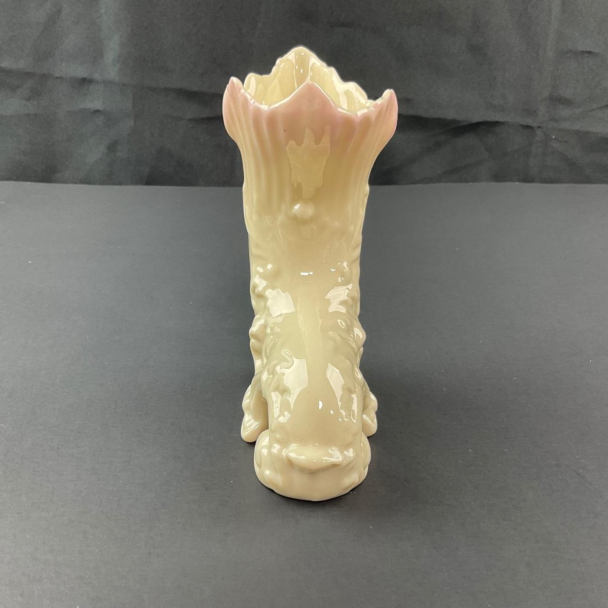 -130- BELLEEK | Fermanagh Cornucopia Spill Vase With Pink | 6th Mark