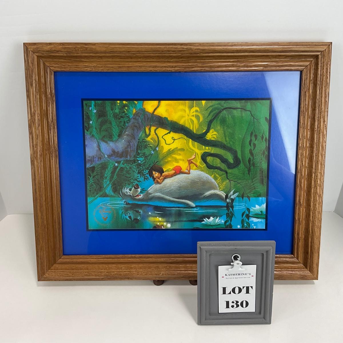 One Disneys The Jungle Book commemorative lithograph framed and matted. 14 inches by 17 inches. Please see photos for details and condition. Any condition statement is given as a courtesy to a client, is an opinion, and should not be treated as a statement of fact. Reference to condition written, oral or within a condition report shall not be regarded as a full account of condition and may not include all defects, alterations, or restorations. Absence of a condition report does not imply a lot is flawless or lacking imperfections or damage. Katherine’s Auction & Appraisal Service shall have no responsibility for any error or omission. Returns shall not be accepted on the basis of condition. ::: Shipping is available on this lot. If you require shipping you must let us know at the close of the auction. We will coordinate with you after the item has been won. Shipping fees will include insurance up to or exceeding the value of all items being mailed. If you have any questions regarding this lot please contact the auctioneer either via this website, by direct email or by phone. PICK UP TIMES and other important information can be found in the TERMS and DESCRIPTION of the auction. Please take a look for pertinent information. Thanks!
