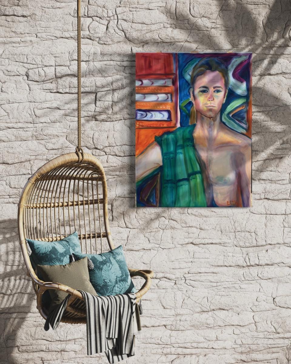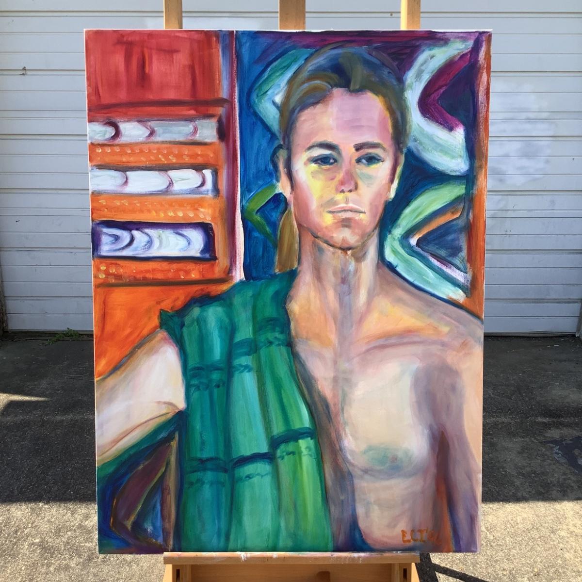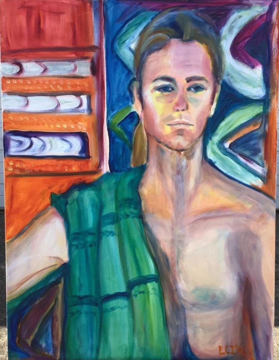 130 "Lance" Portrait of Shirtless Man w/Towel 1996 Oil on Canvas by Ellen Into