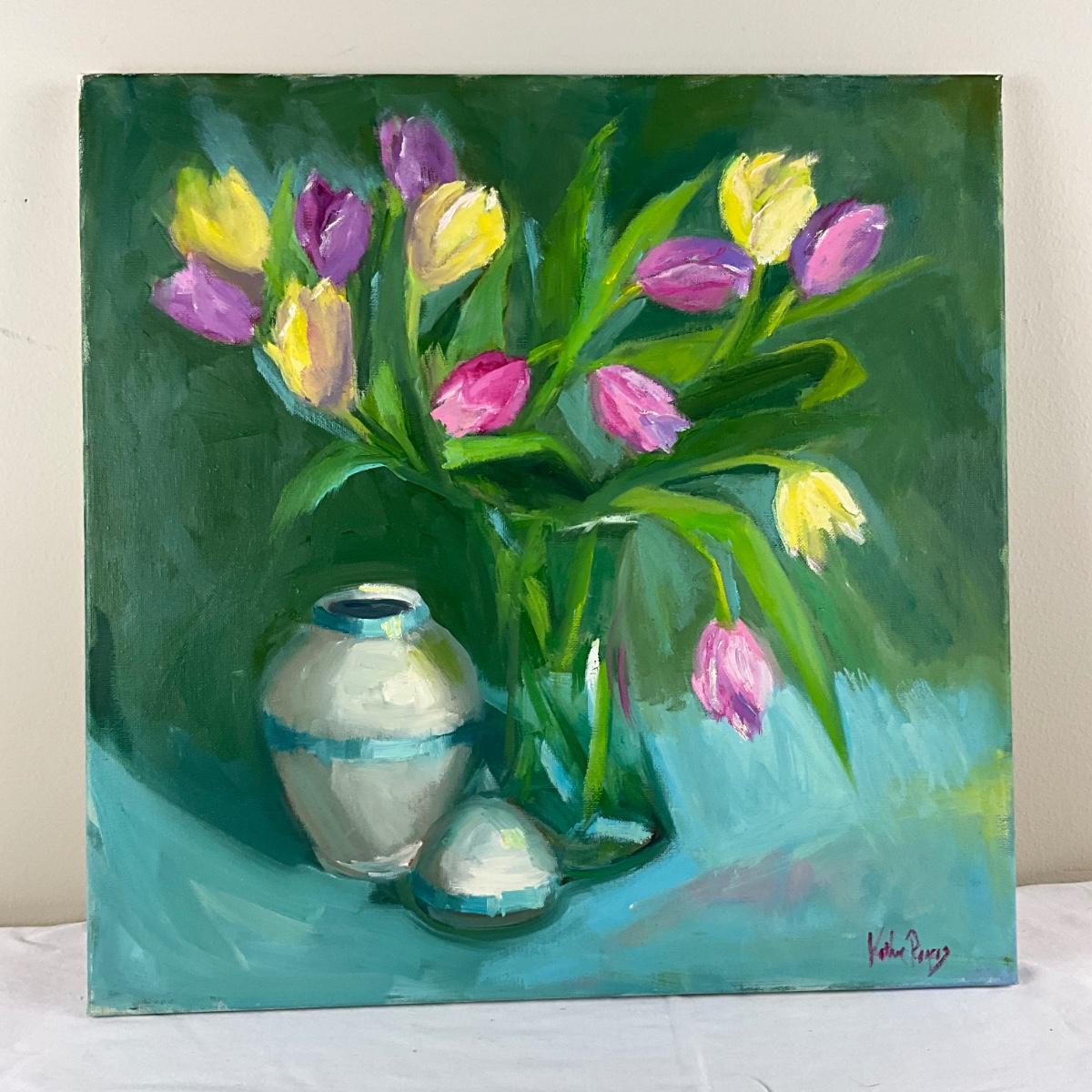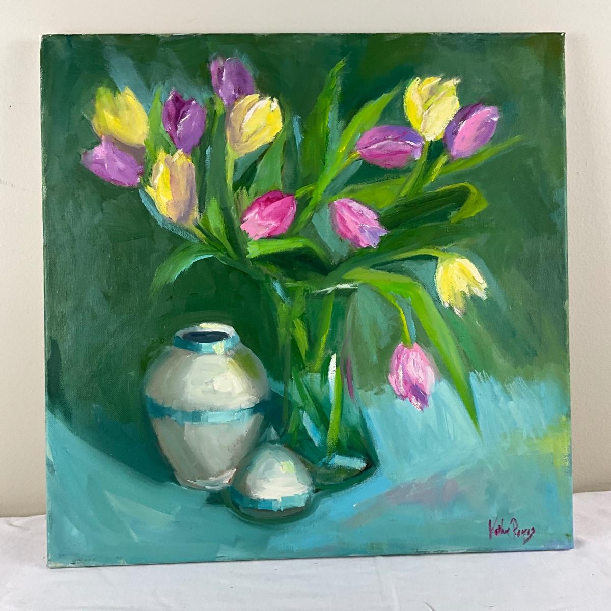 130 Original Oil Painting Still LIfe Tulips and Vase by Kathie Rogers