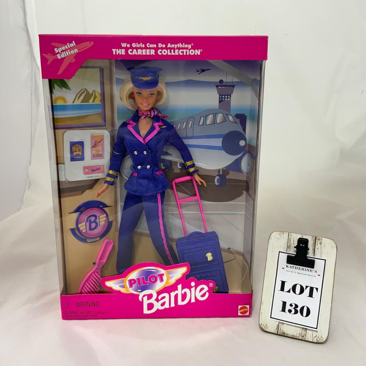 Pilot Barbie, part of the Career Collection - Special Edition! Produced by Mattel in 1997. Please see photos for details and condition. !!! Proceeds from this auction will be donated to the NEW COMMUNITY SHELTER in Green Bay, Wisconsin. Please see Sale Description to the Left for more information. !!! ::: Shipping is available on this lot. If you require shipping you must let us know at the close of the auction. We will coordinate with you after the item has been won. Shipping fees will include insurance up to or exceeding the value of all items being mailed. If you have any questions regarding this lot please contact the auctioneer either via this website, by direct email or by phone. PICK UP TIMES and other important information can be found in the TERMS and DESCRIPTION of the auction. Please take a look for pertinent information. Thanks!