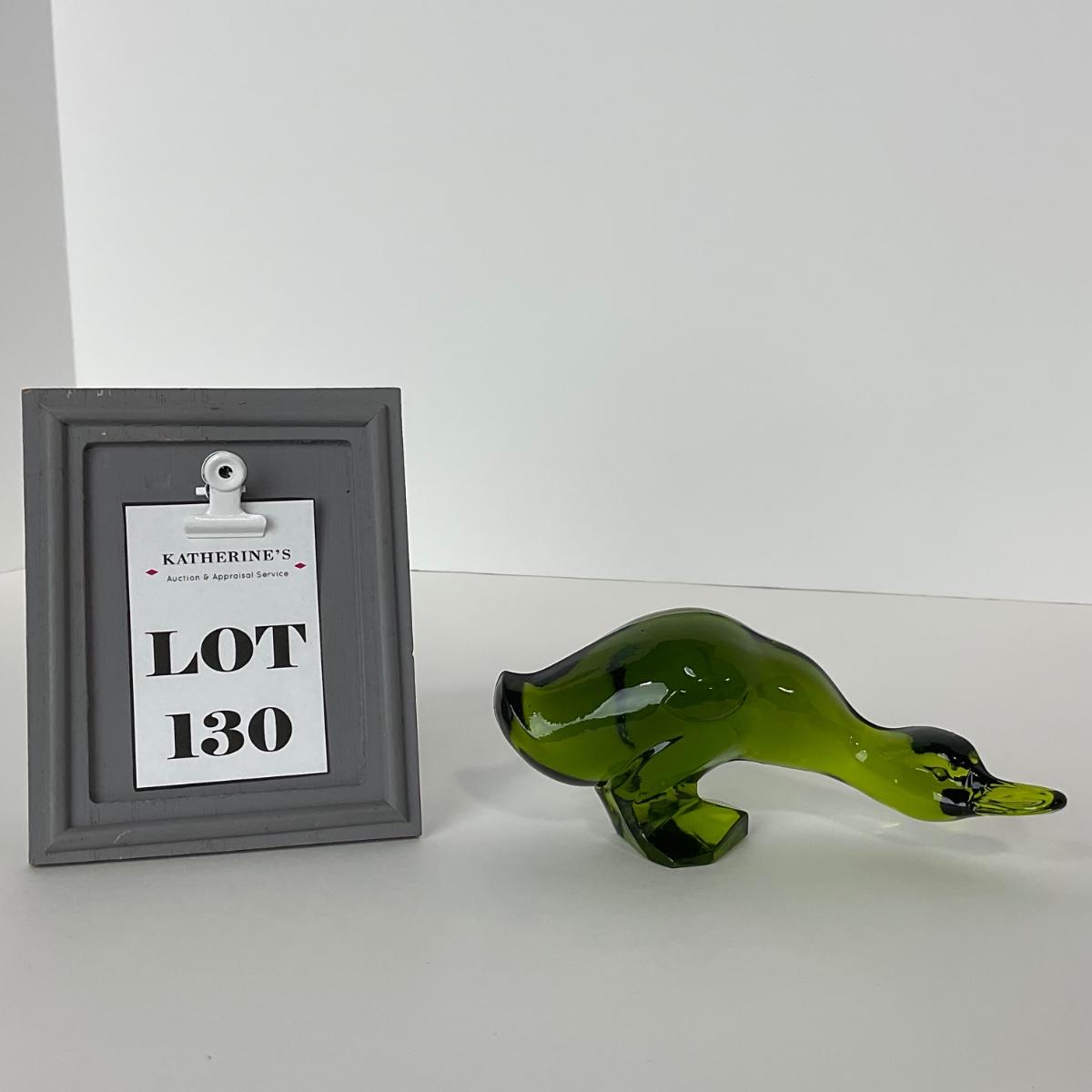 One Viking green epic fighting duck figure with head down. This piece does have some chips and marks but in otherwise good condition. Please see photos for details and condition. 2 1/2 inches tall by 6 inches long. Any condition statement is given as a courtesy to a client, is an opinion, and should not be treated as a statement of fact. Reference to condition written, oral or within a condition report shall not be regarded as a full account of condition and may not include all defects, alterations, or restorations. Absence of a condition report does not imply a lot is flawless or lacking imperfections or damage. Katherine’s Auction & Appraisal Service shall have no responsibility for any error or omission. Returns shall not be accepted on the basis of condition. ::: Shipping is available on this lot. If you require shipping you must let us know at the close of the auction. We will coordinate with you after the item has been won. Shipping fees will include insurance up to or exceeding the value of all items being mailed. If you have any questions regarding this lot please contact the auctioneer either via this website, by direct email or by phone. PICK UP TIMES and other important information can be found in the TERMS and DESCRIPTION of the auction. Please take a look for pertinent information. Thanks!
