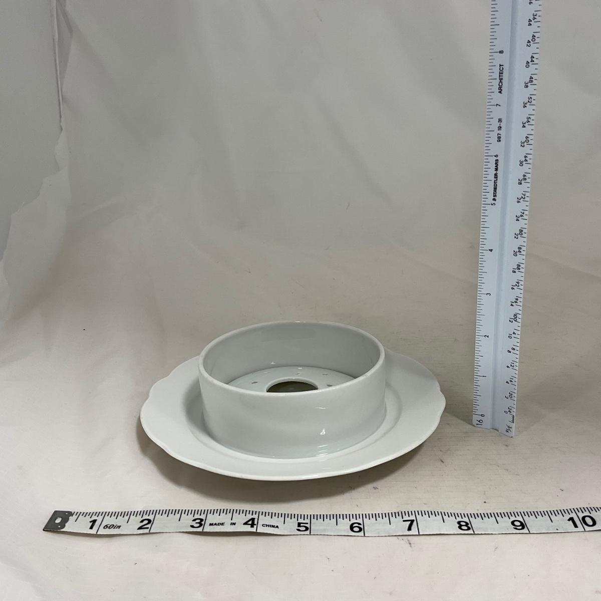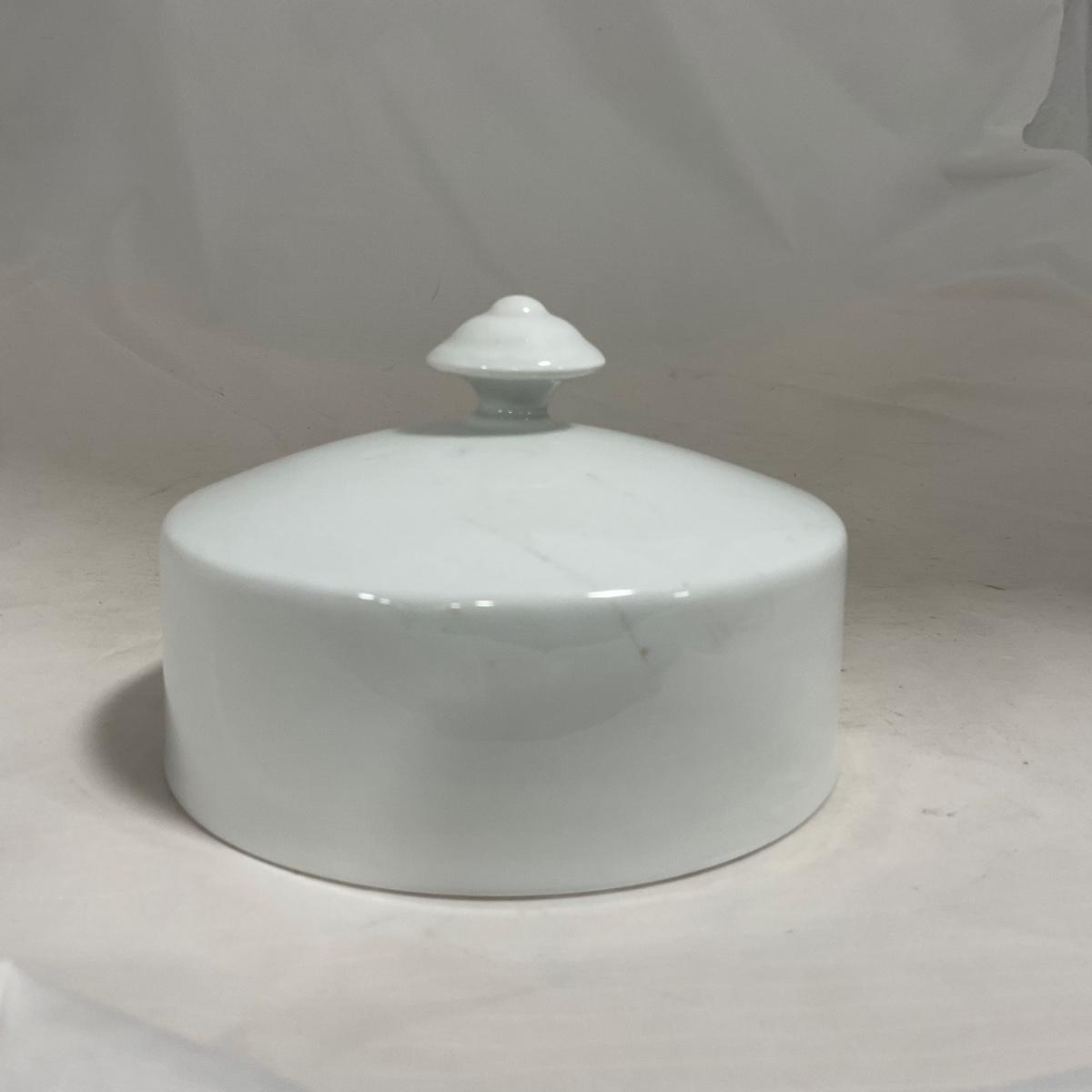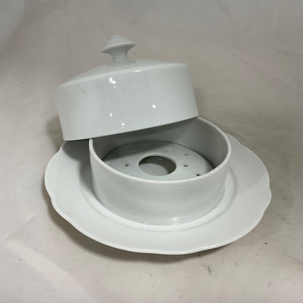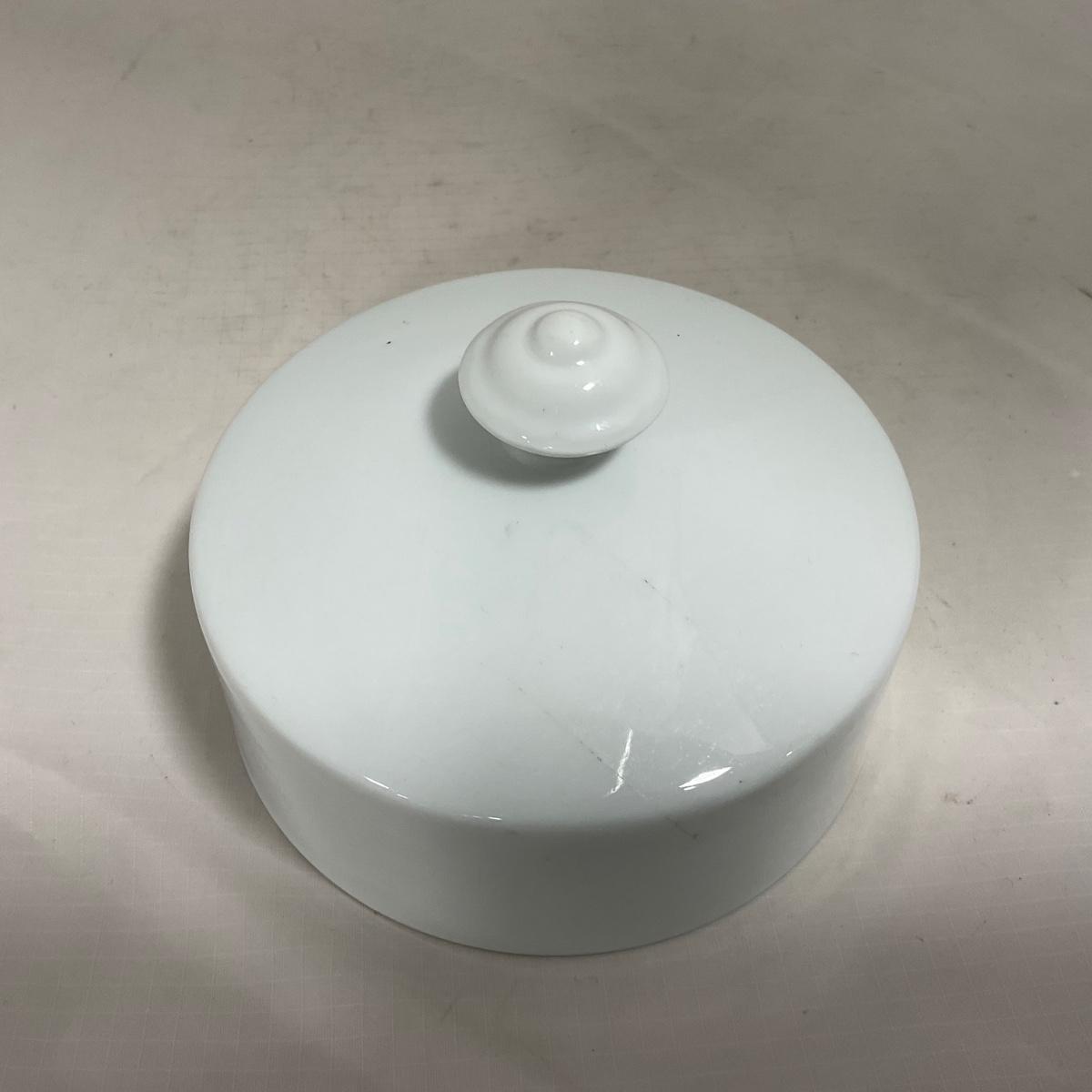 One classic white colored covered butter dish with insert. Unmarked. Please see photos for details and condition. ::: Shipping is available on this lot. If you require shipping you must let us know at the close of the auction. We will coordinate with you after the item has been won. Shipping fees will include insurance up to or exceeding the value of all items being mailed. If you have any questions regarding this lot please contact the auctioneer either via this website, by direct email or by phone. PICK UP TIMES and other important information can be found in the TERMS and DESCRIPTION of the auction. Please take a look for pertinent information. Thanks!