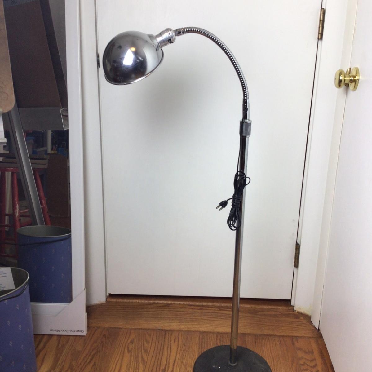 Lamp is chrome and is adjustable at the top-measures 46” tall.