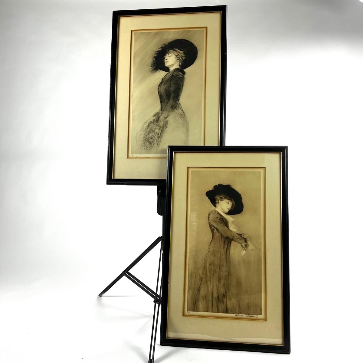 Pair of early 20th century French aquatint/drypoint signed Drian Etienne Adrien (1885-1961) Portraits. Both mat, framed. signed and numbered.