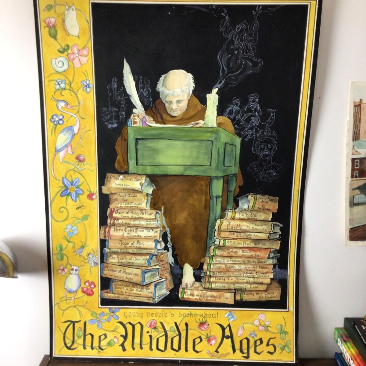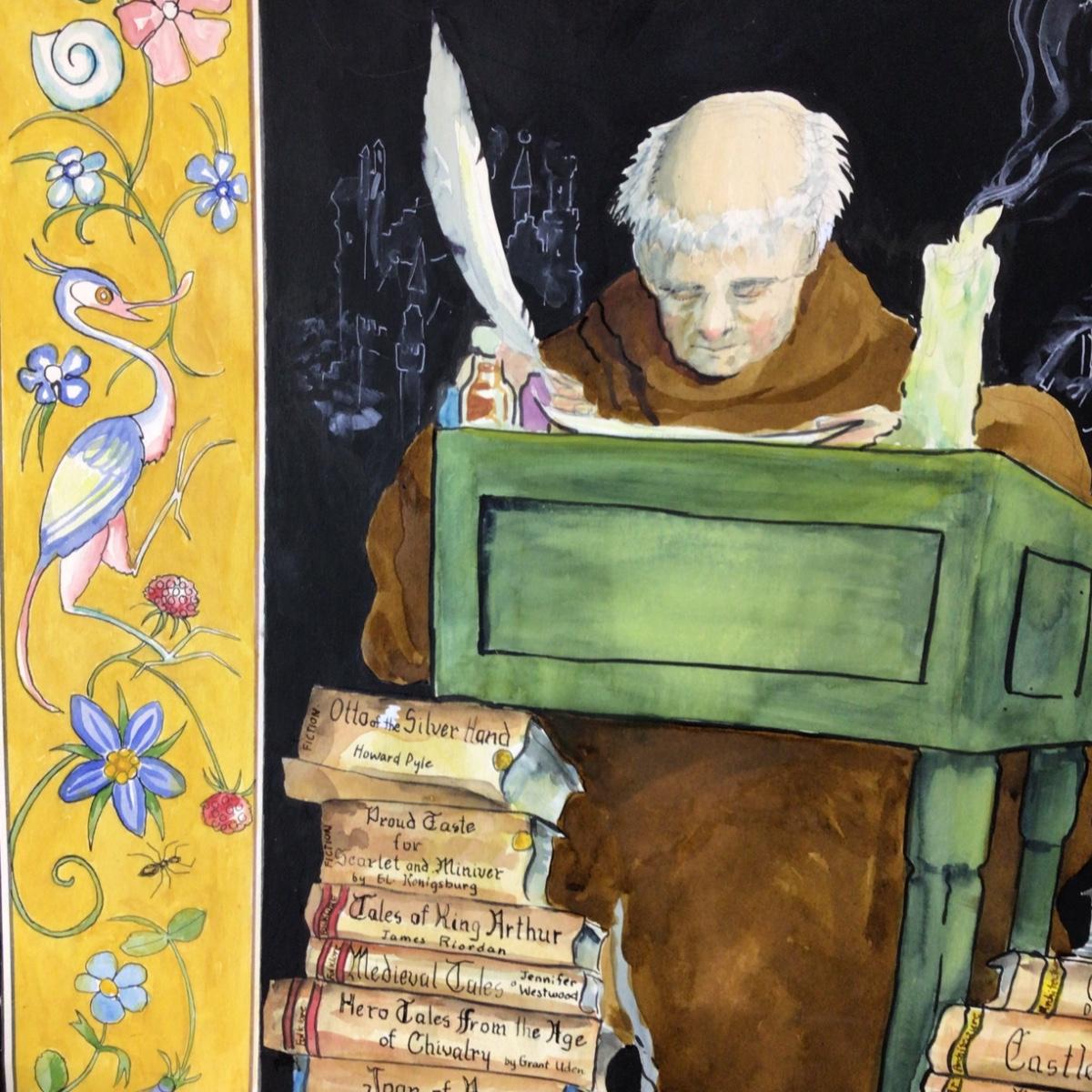 1302 The Middle Ages Large Watercolor Painting by Local Artist