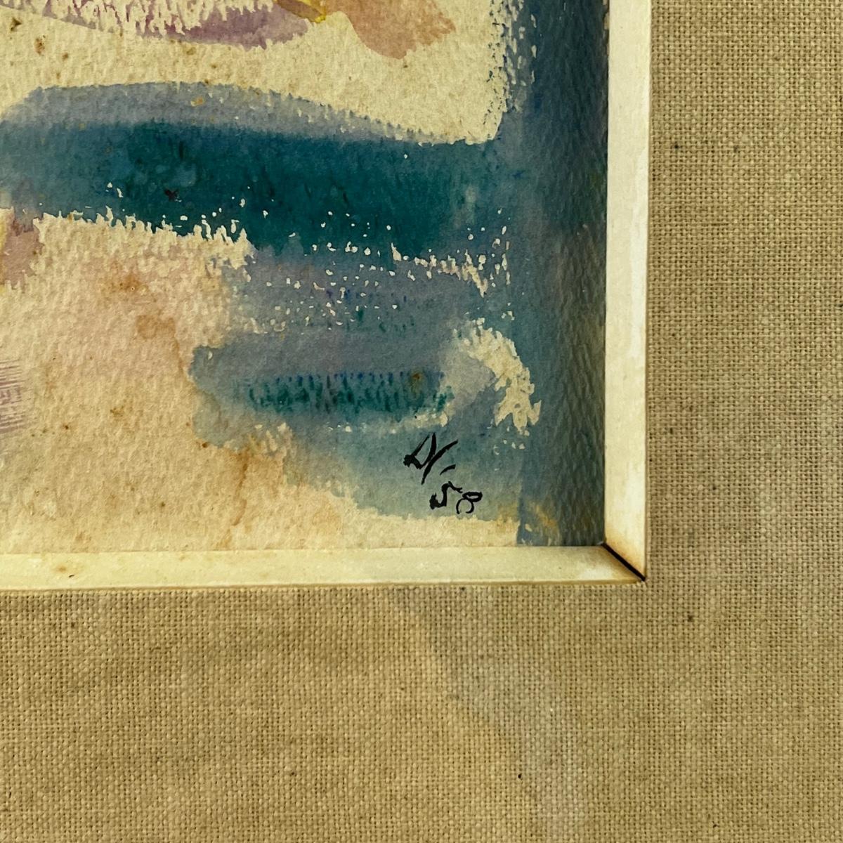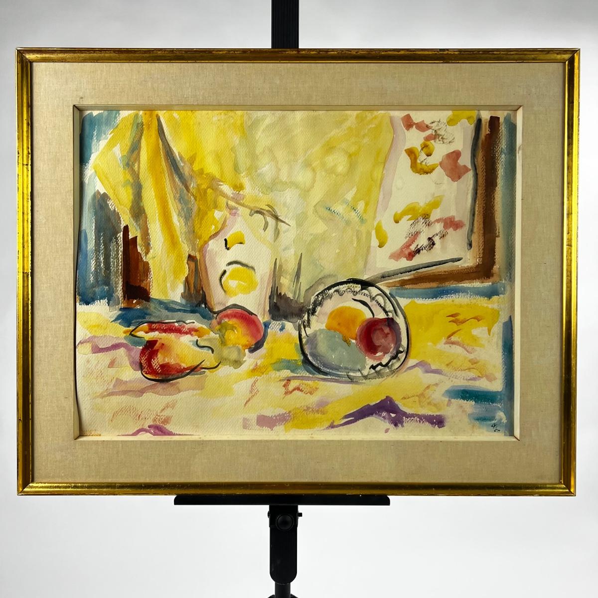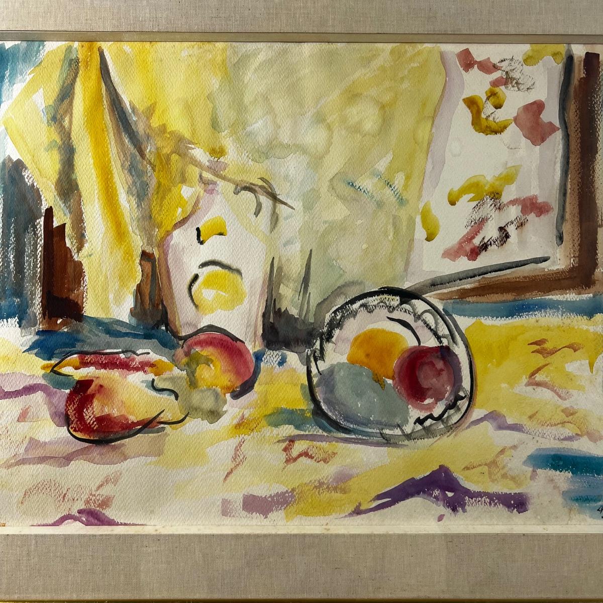 Mid Century “˜58 Signed Original Watercolor of Table Scape. Has mat and frame. The artwork is slightly bending out of frame.