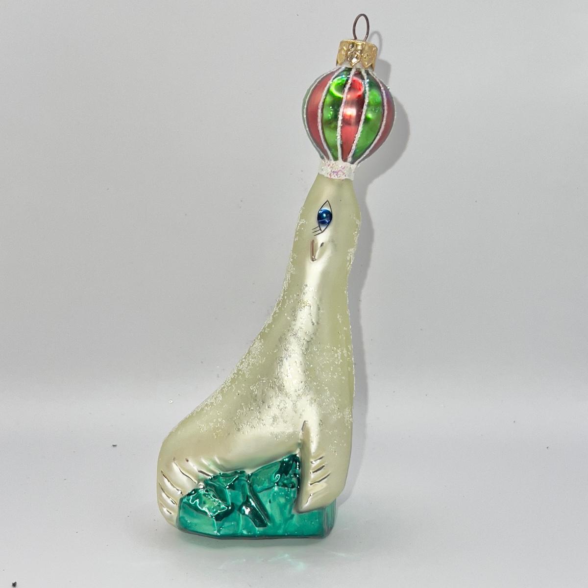 1305 Christopher Radko 1990’s “Circus Seal” Glass Ornament