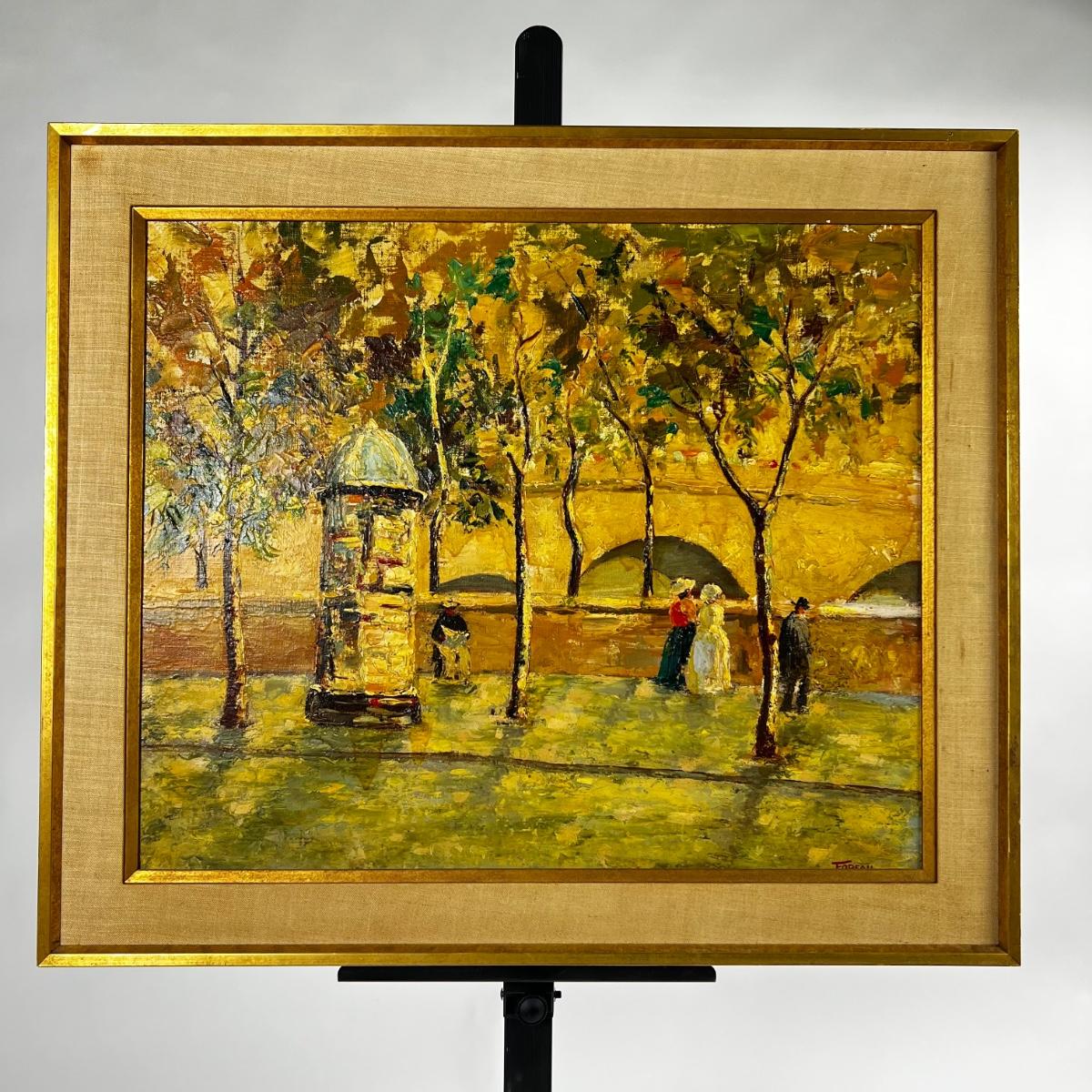 Original Signed Impressions Oil Painting by Louis Henri-Foreau (1866-1938). Rural life at a Paris park. Has museum mat and frame.