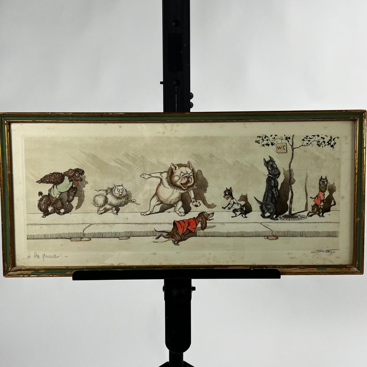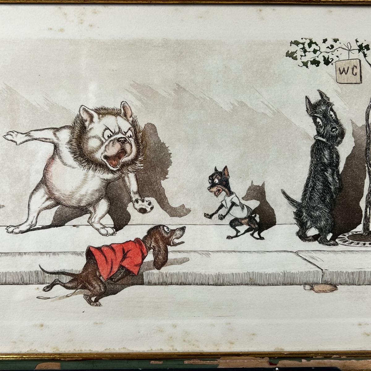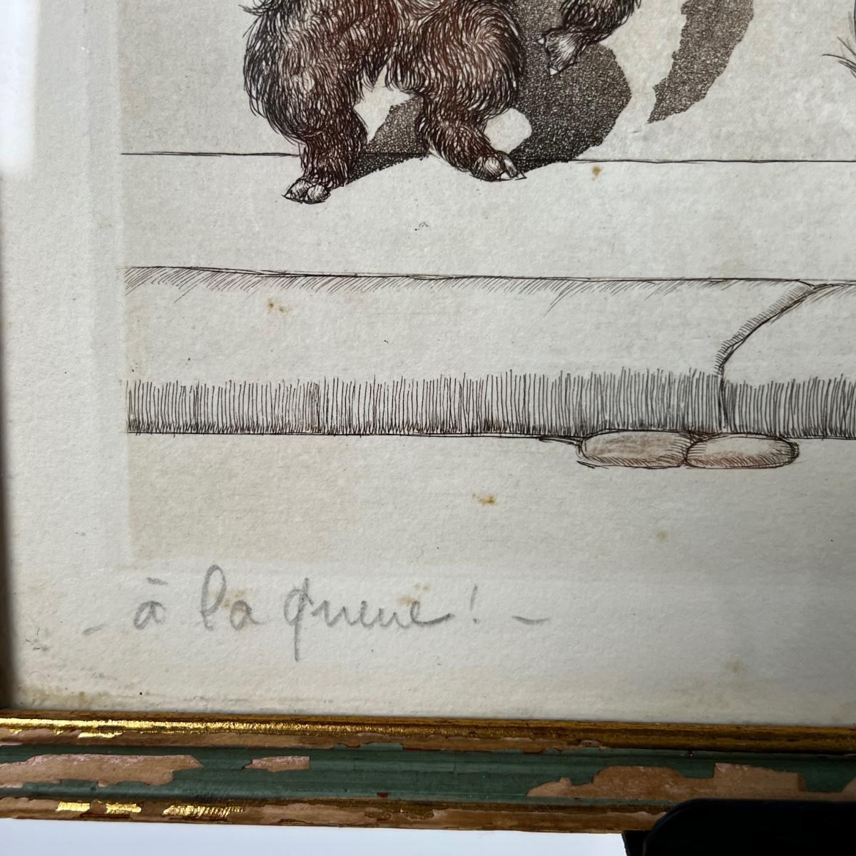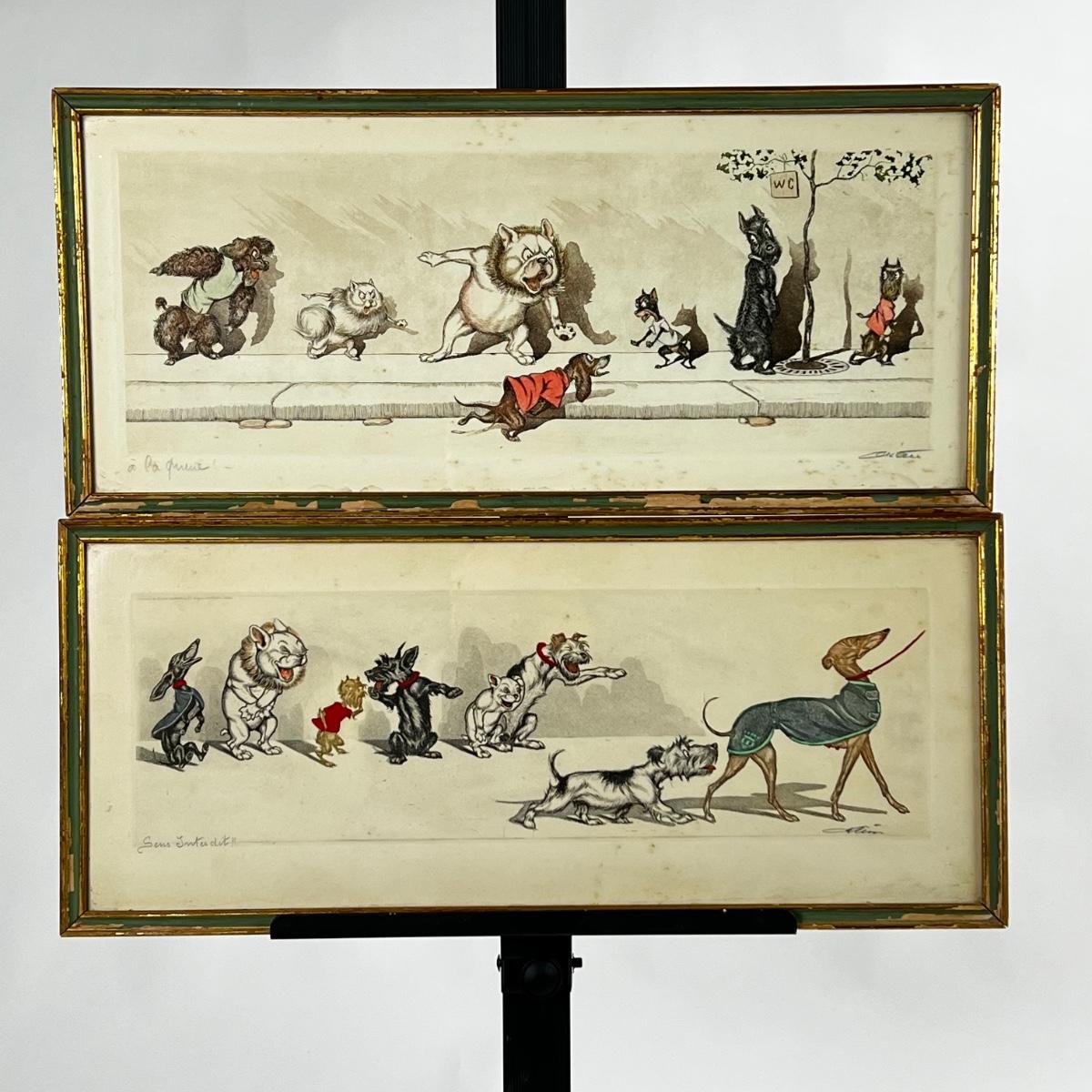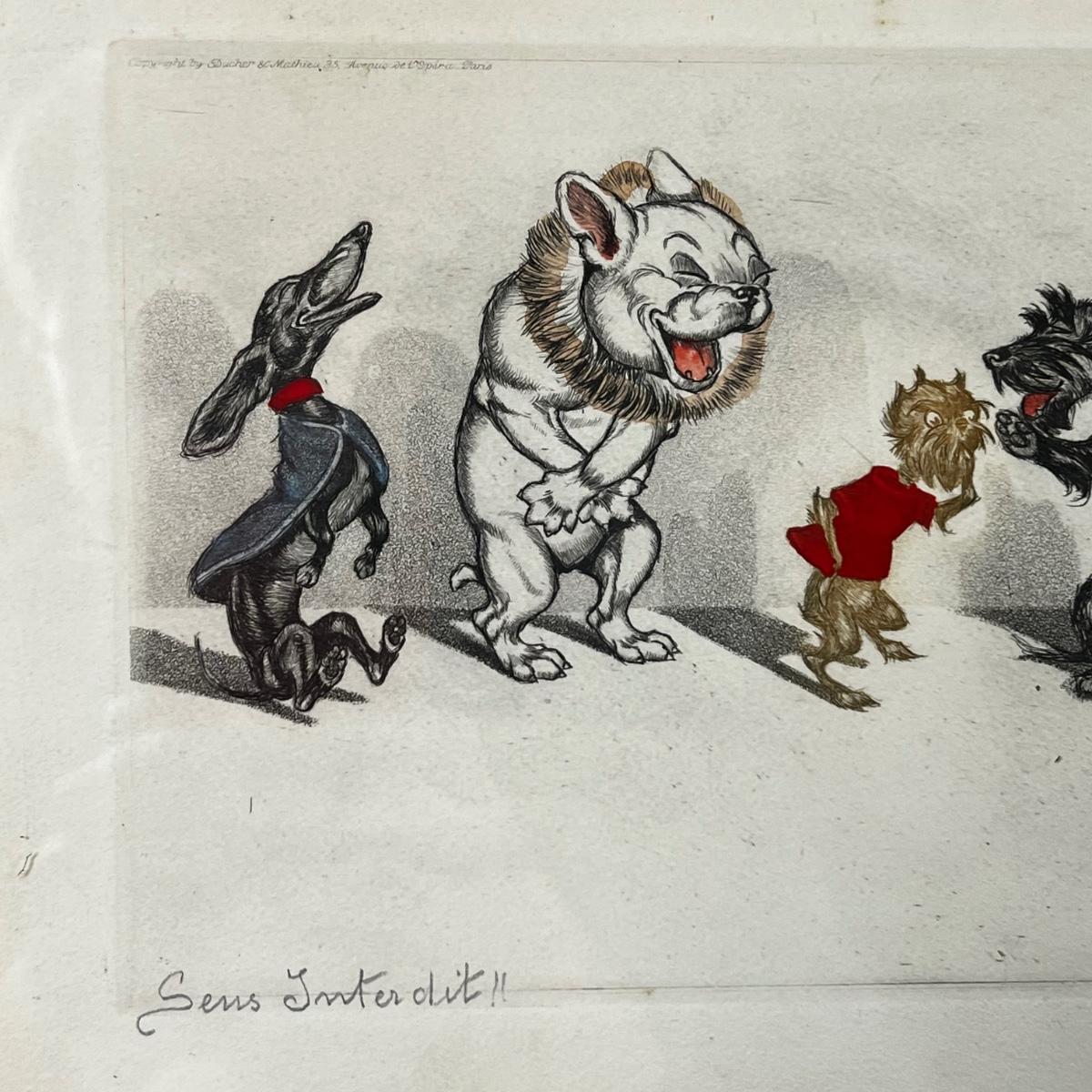 Pair of Russian Hand Colored Etching Illustration’s “Dirt Dogs In Paris” by Boris O’Klein (1893-1985). Art has some foxing.