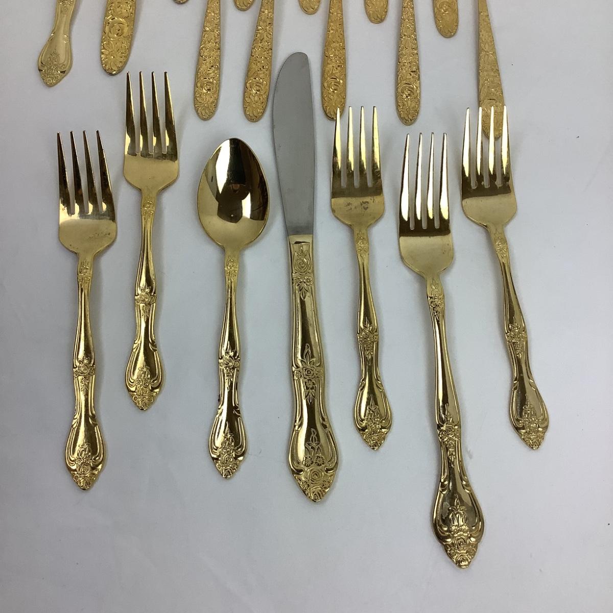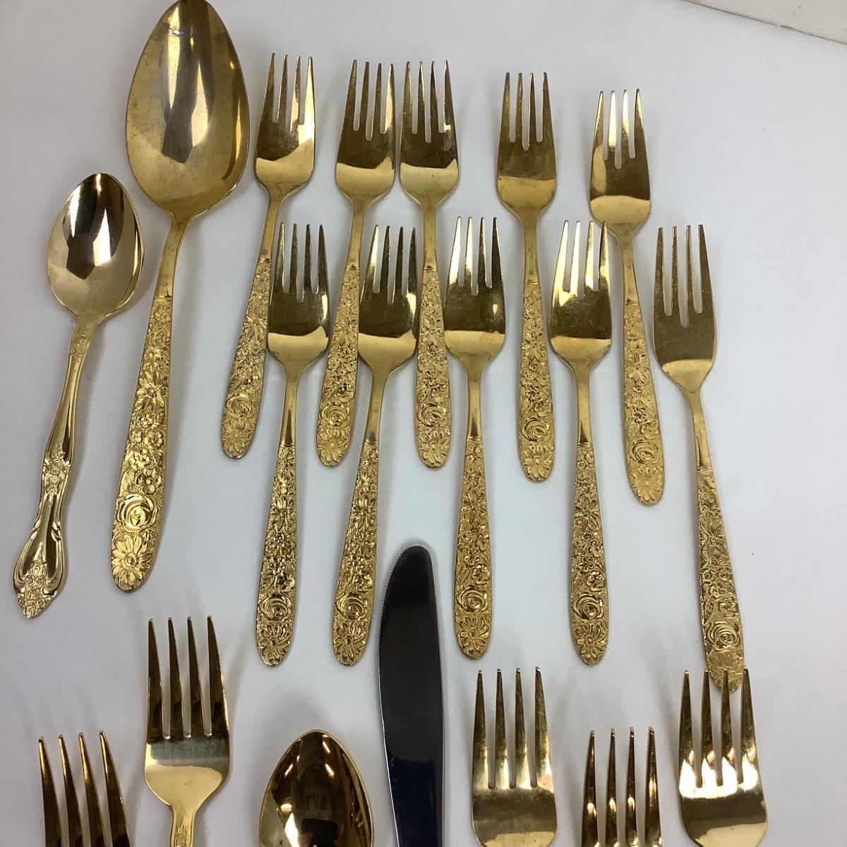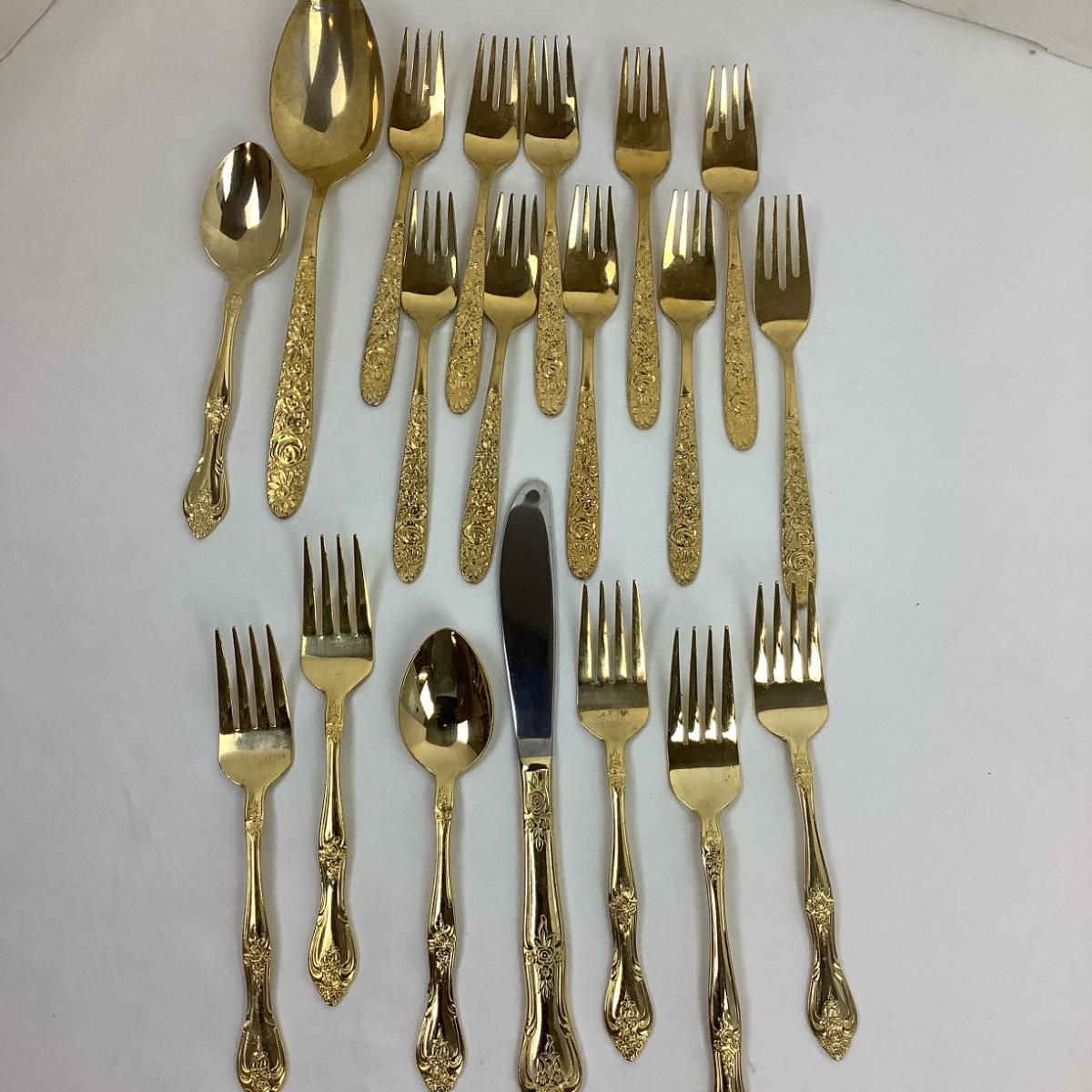 19 pieces of gold tone flatware, there are 2 different patterns in the lot.