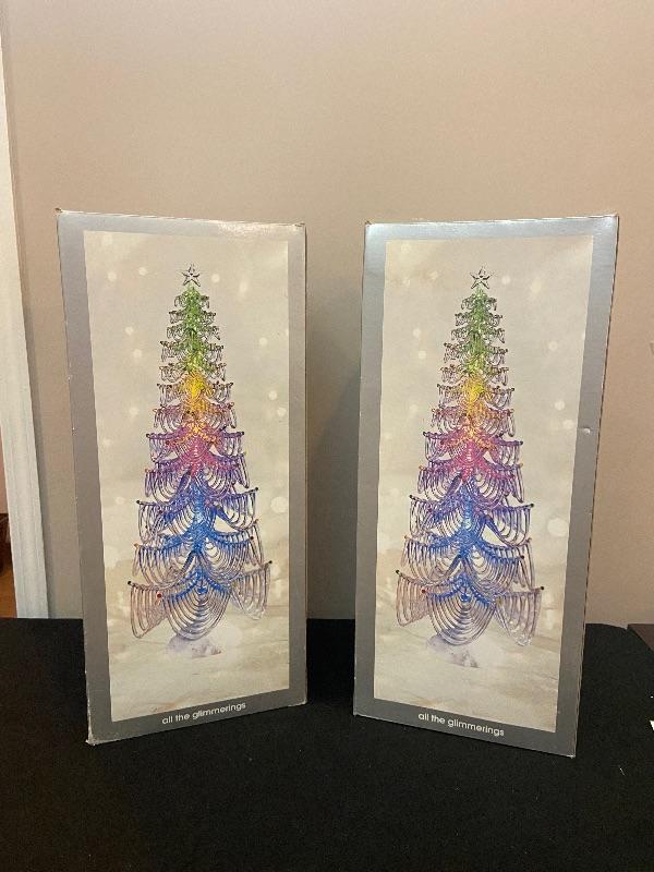 #131 2 Light up Classic, Glass Looking Trees.